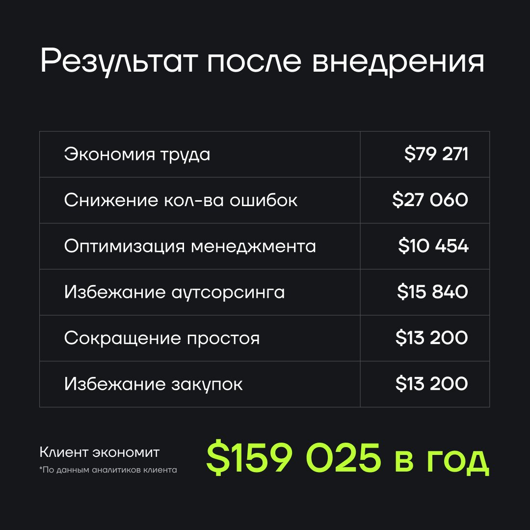 По словам клиента, именно этот раздел дал значительный вау-эффект в процессах производства: