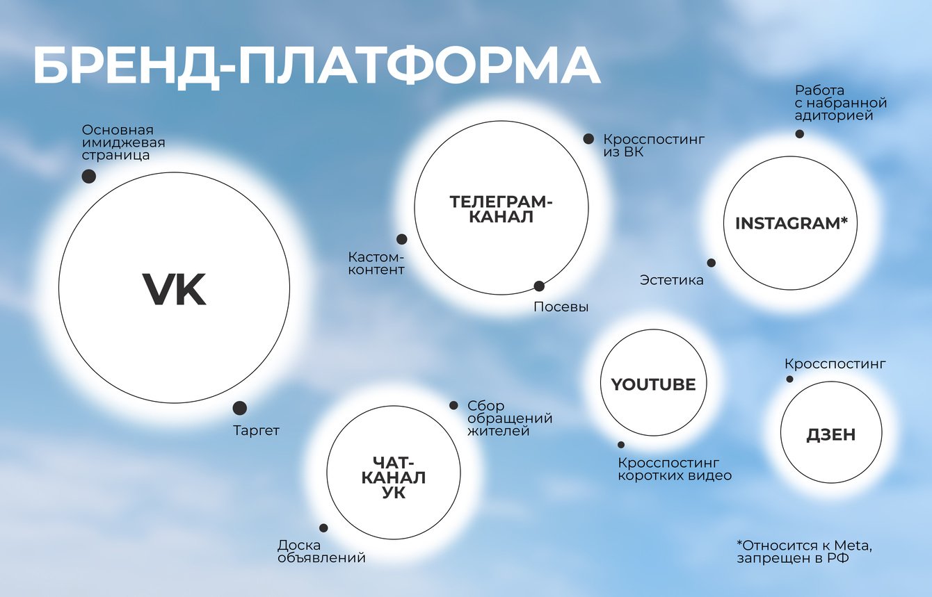 У проекта изначально была группа ВК, Инстаграм*, открытый телеграм-канал для всех потенциальных покупателей, закрытый чат эксплуатационной компании. Также видеоконтент кросспостился на YouTube и Дзен. Впоследствии мы завели ТикТок, RuTube и Пинтерест для того, чтобы собирать максимально возможный охват с видеоконтента.