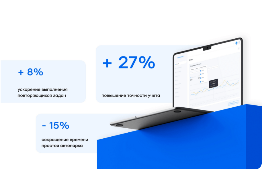 В результате внедрения системы завод добился повышения точности учета на 27%, сокращения времени простоя автопарка на 15% и ускорения выполнения повторяющихся задач на 8%. Автоматизация процессов улучшила эффективность работы персонала и предоставила руководству прозрачность и контроль над запасами, что укрепило позиции завода на рынке и повысило его прибыльность.