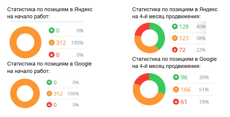Ключевые запросы целевой аудитории стремительно заняли ТОП-10 в Яндексе и Google. Видимость сайта в органике значительно улучшилась, что увеличило приток заинтересованных пользователей.