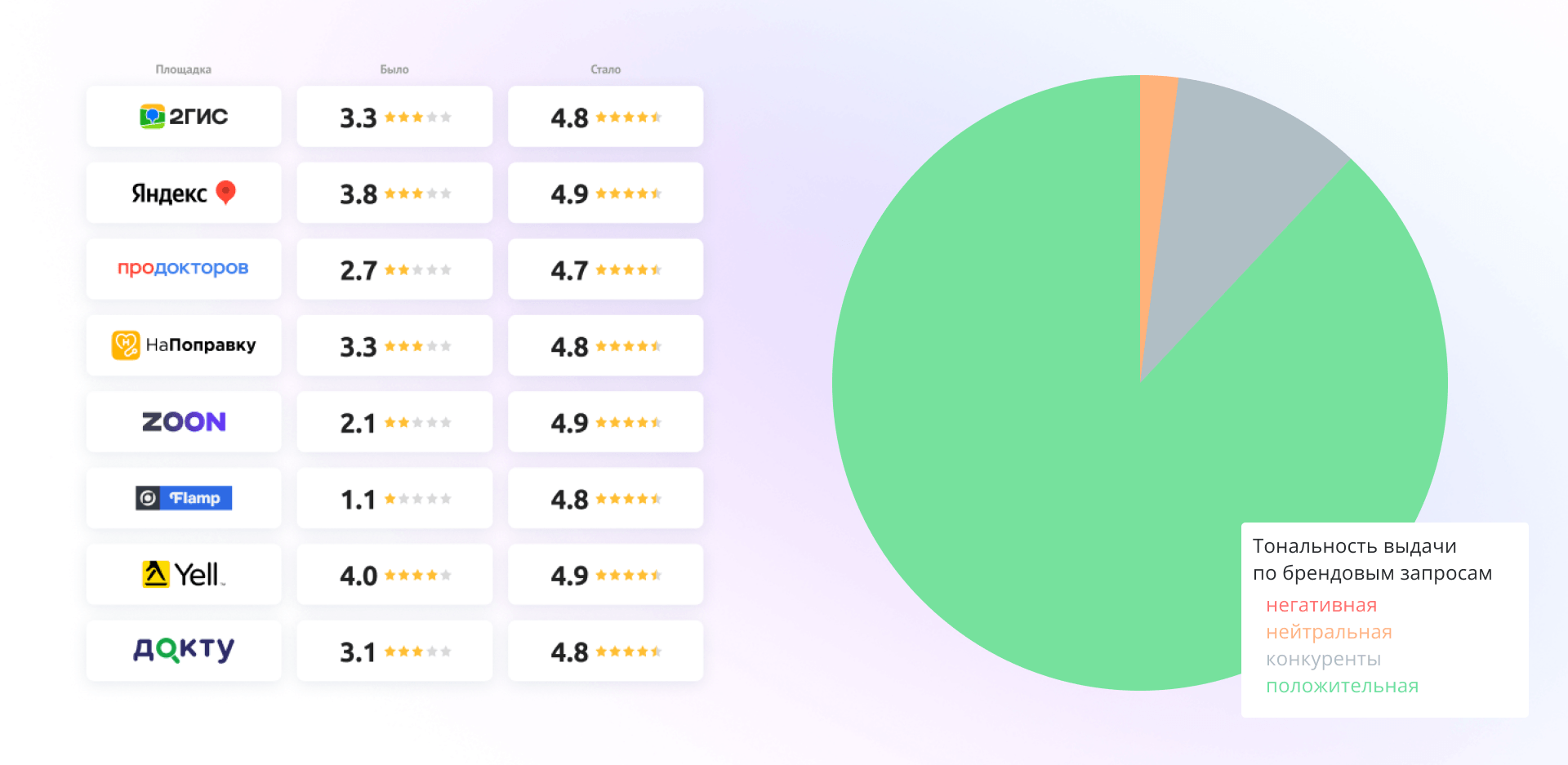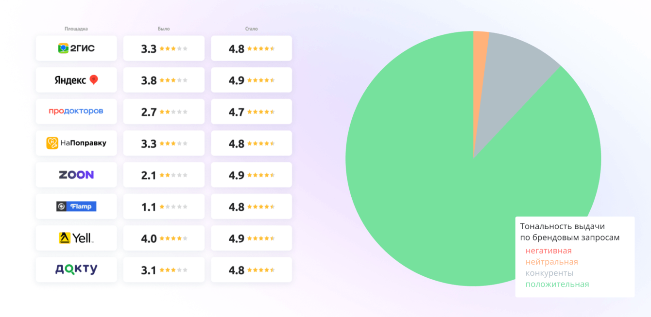 — Параллельно запустили кампанию по сбору новых положительных отзывов, которые со временем вытеснили негатив с первых позиций.