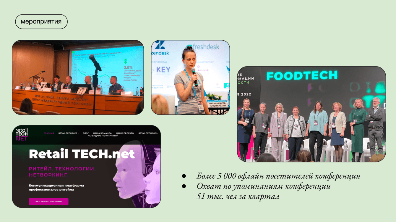 Начав с развития B2B-направления, мы сразу сосредоточились на участии в крупных отраслевых мероприятиях. За полгода спикеры сервиса экспресс-доставки «Перекрёстка» делились опытом на Retail TECH.net, Всероссийский форум по электронной коммерции, Неделя Ритейла, IT Retail Day, IT & Retail Конференция UPGRADE, New Age ритейл-логистики и других крупных форумах, конференциях и в подкастах.
