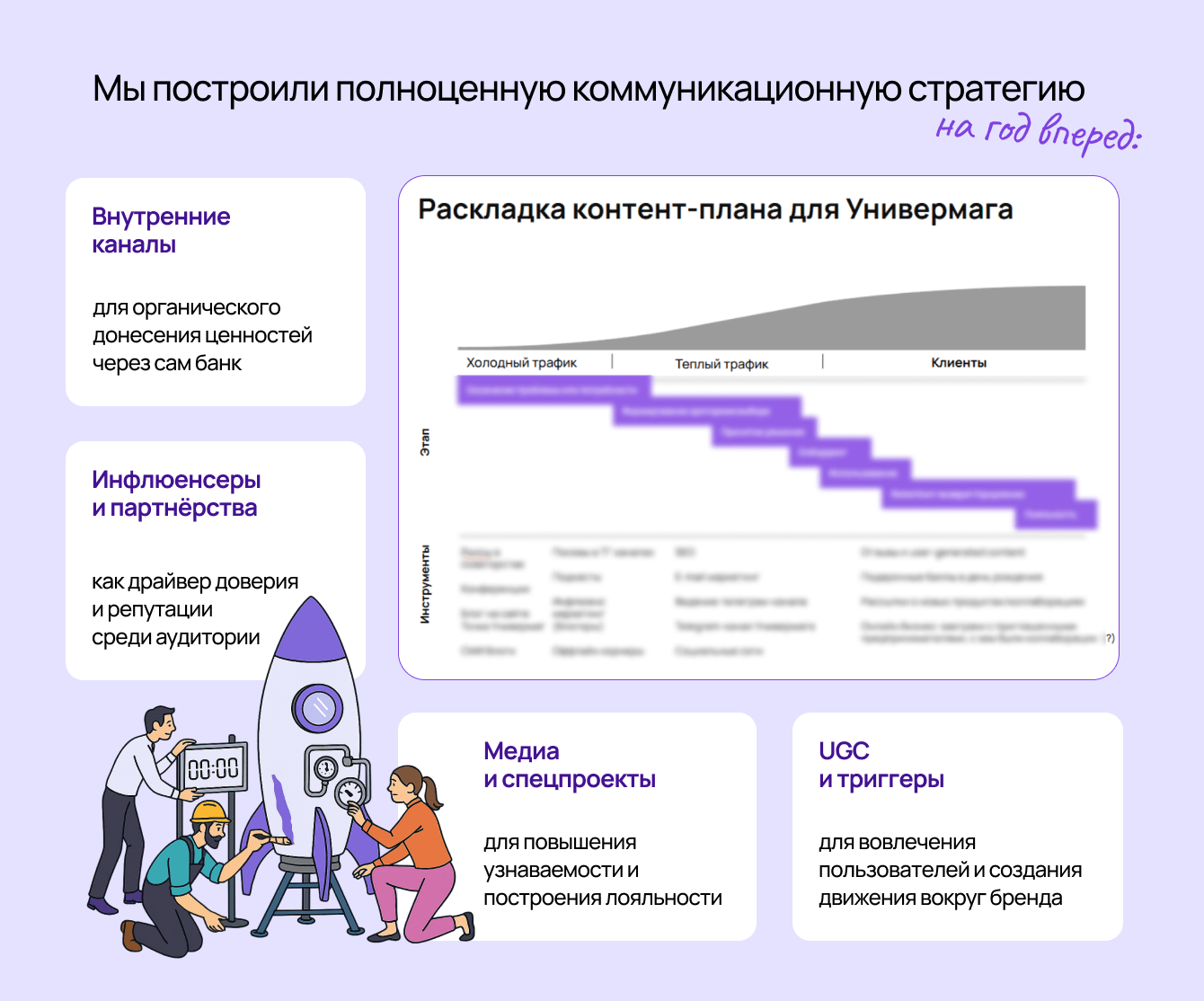 Мы построили полноценную стратегию коммуникации на год вперёд, в которой каждый канал получил свою роль:
