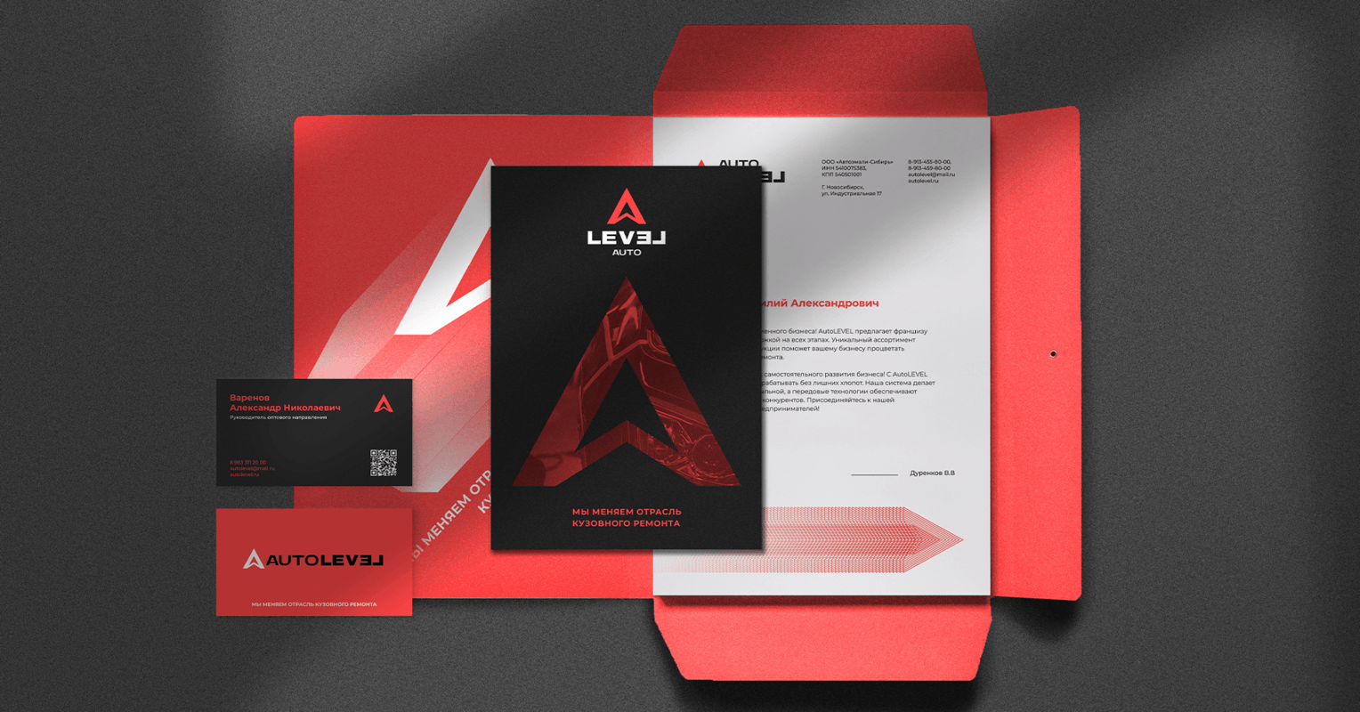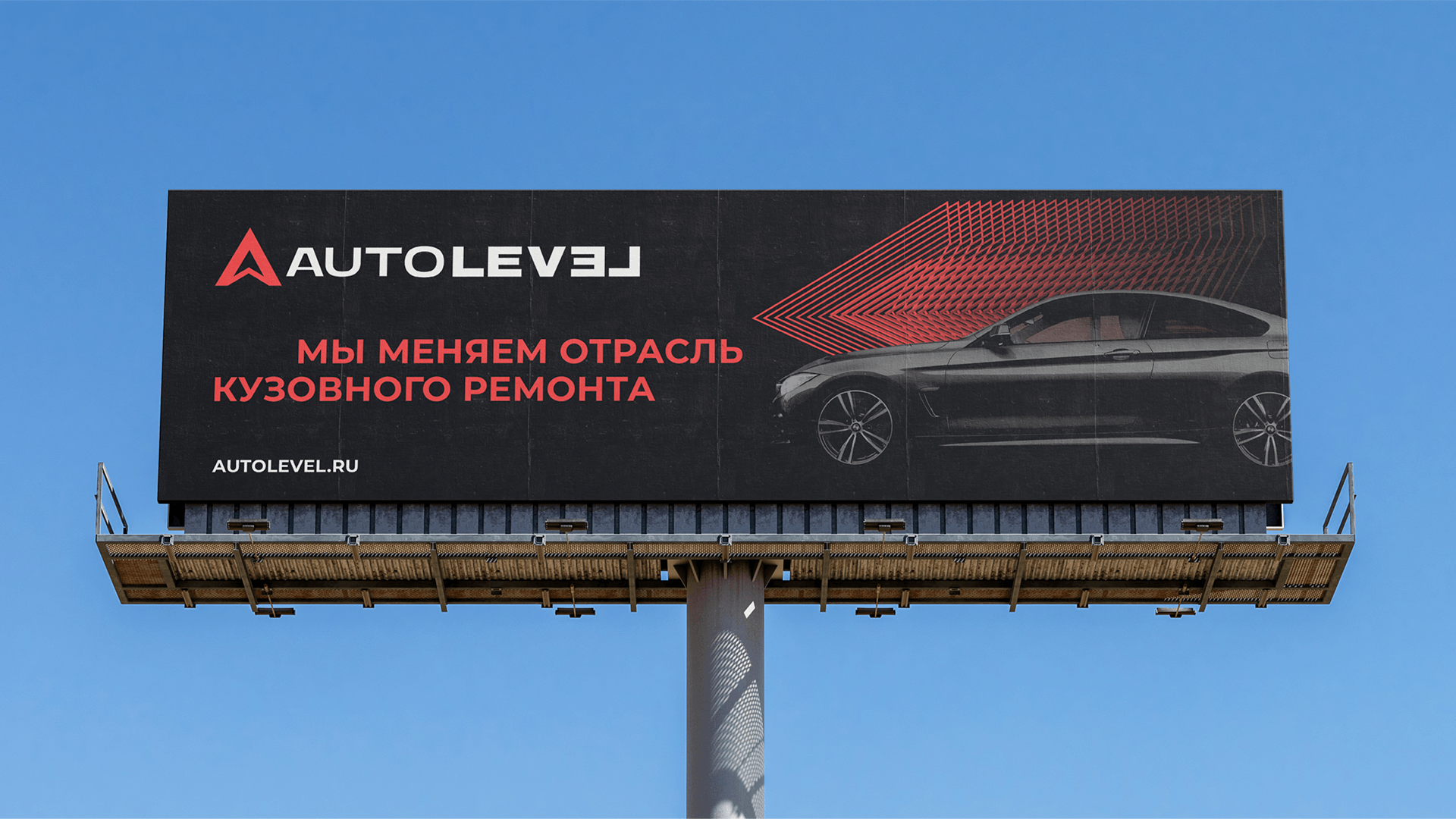 Фирменный стиль, разработанный для Autolevel, легко адаптируется и рассчитан на широкое применение, включая оффлайн-носители — от билбордов и вывесок до оформления выставочных пространств.