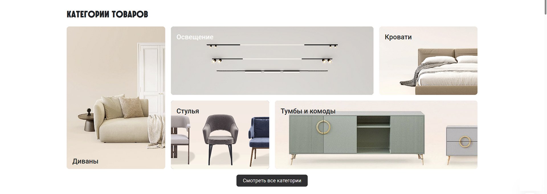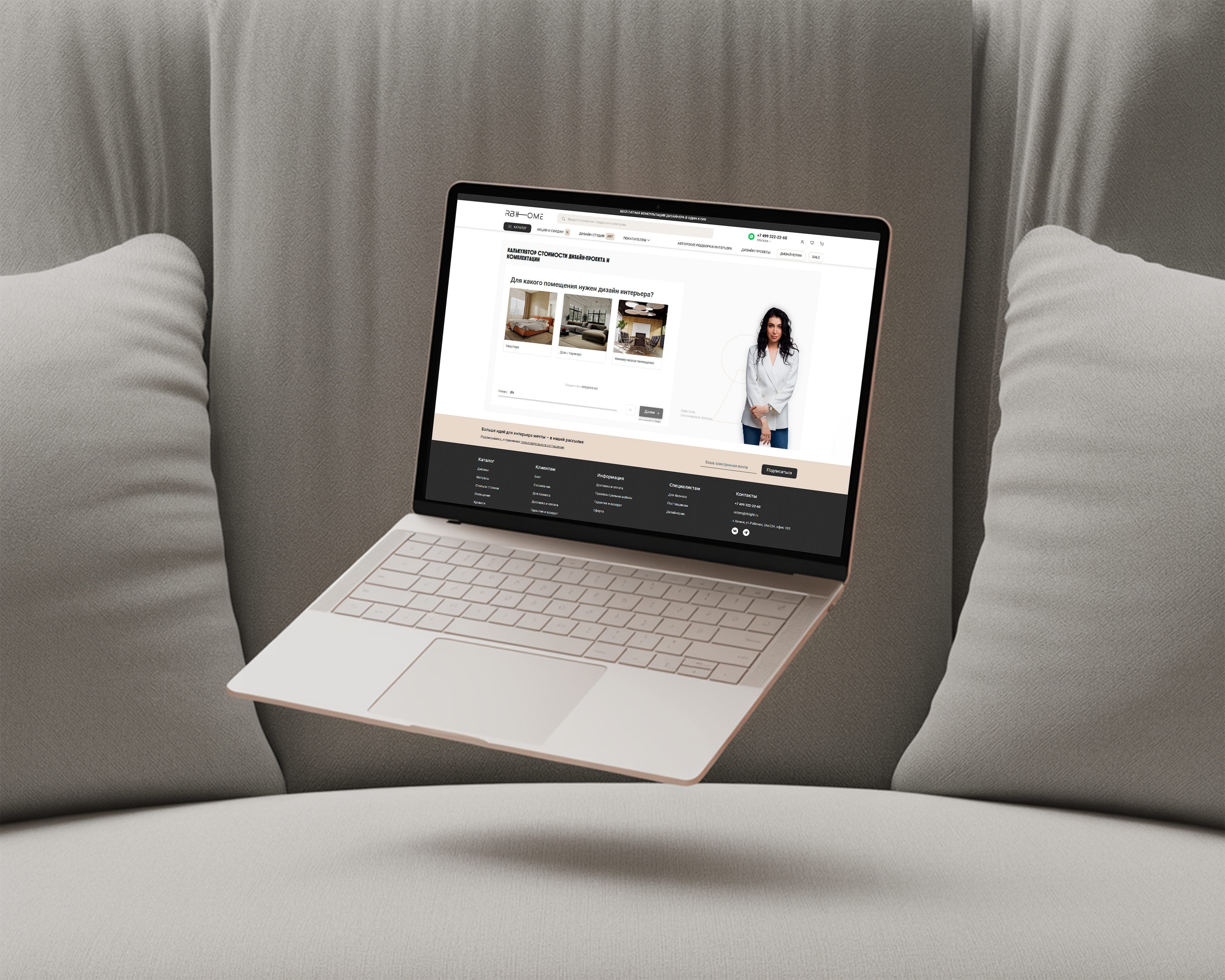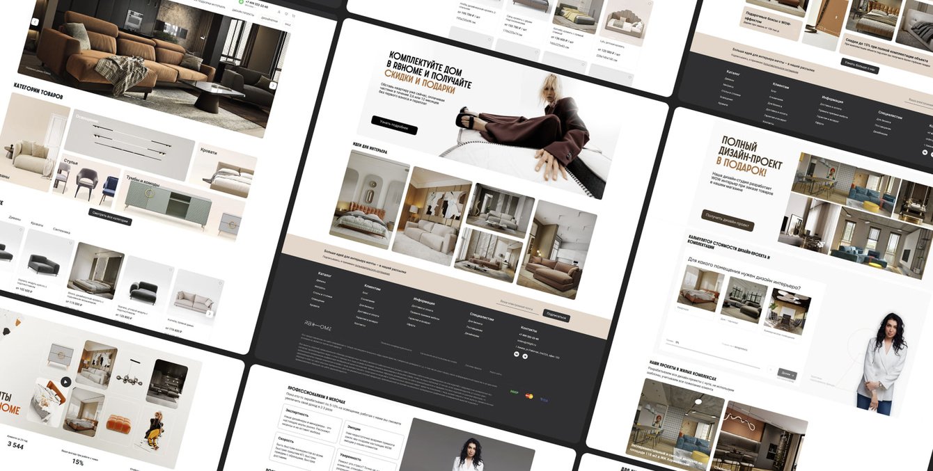 Обеспечить премиальный UX/UI — крупные фото, «воздух» в блоках, чистая типографика и адаптивный дизайн под все устройства, чтобы онлайн-впечатление соответствовало уровню офлайн-шоурума.