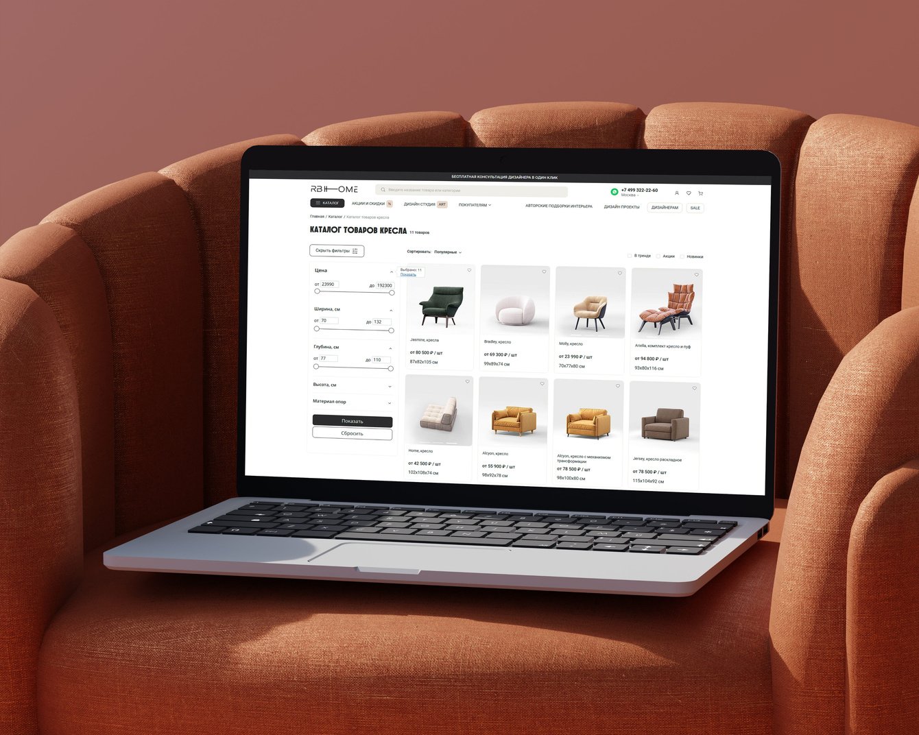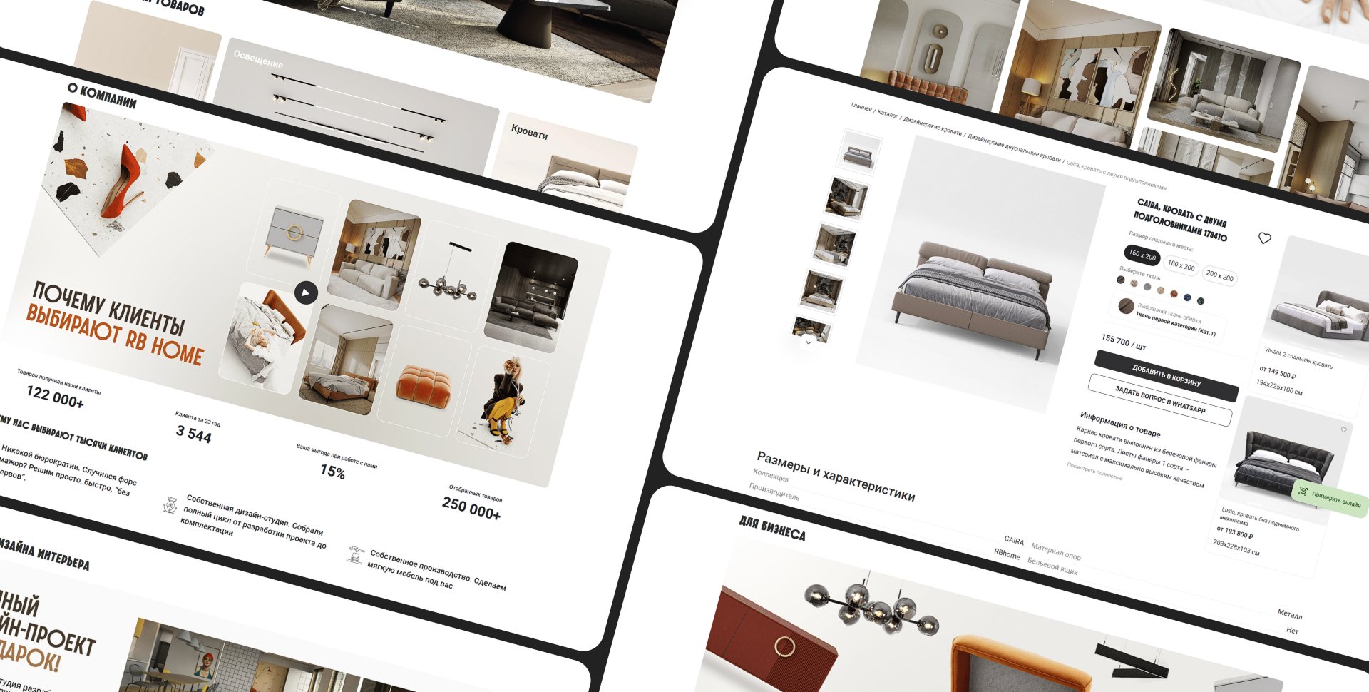 RB Home пришли к нам с пониманием, что просто обновить существующий интернет-магазин недостаточно. Старый сайт был ограничен по функционалу: каталог показывал только часть товаров, личных кабинетов для дизайнеров и партнёров не было, CRM не интегрирована, а менеджеры теряли заявки в Excel.