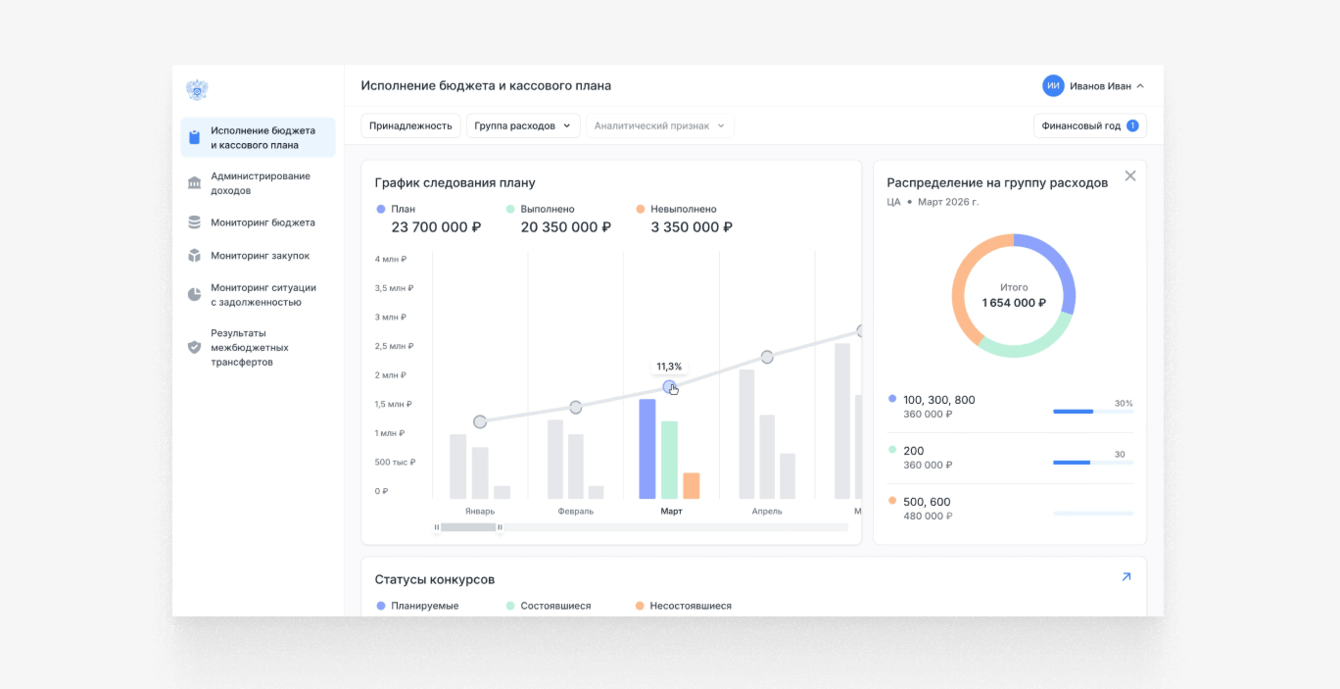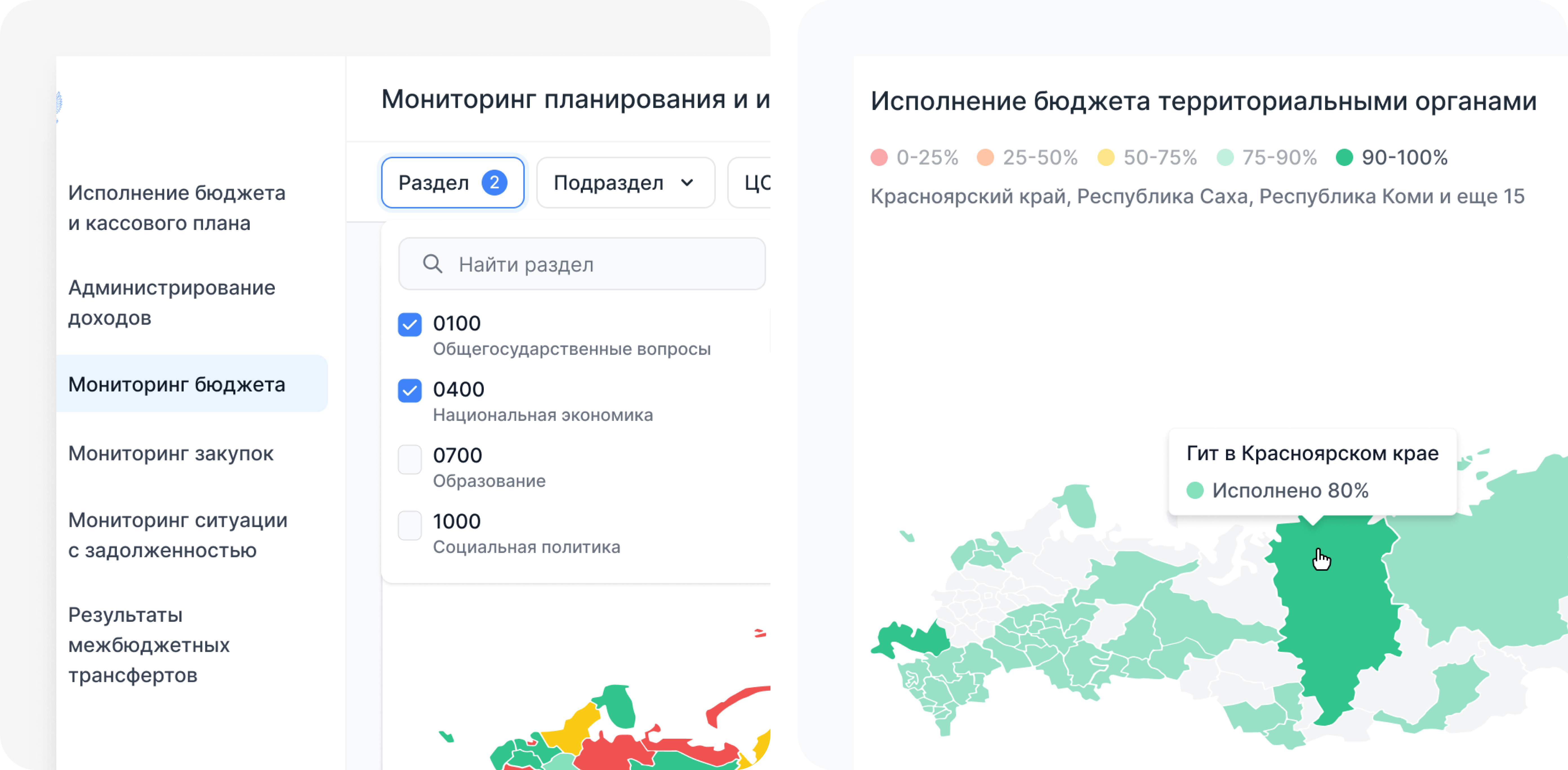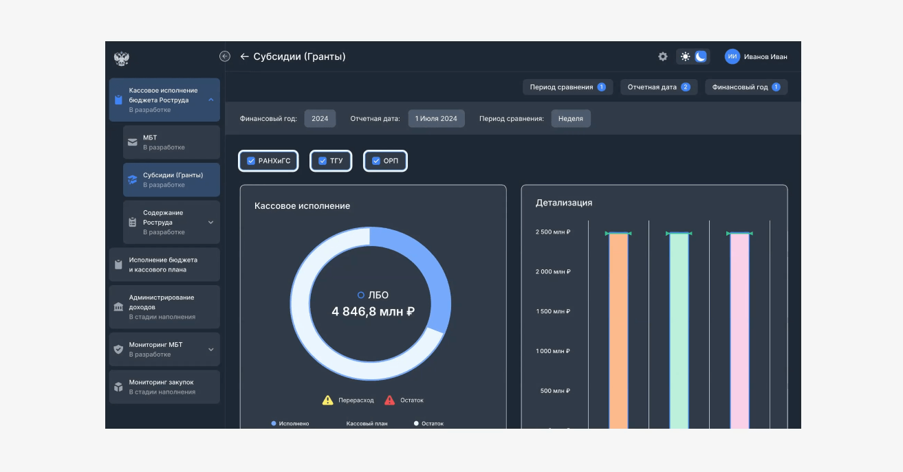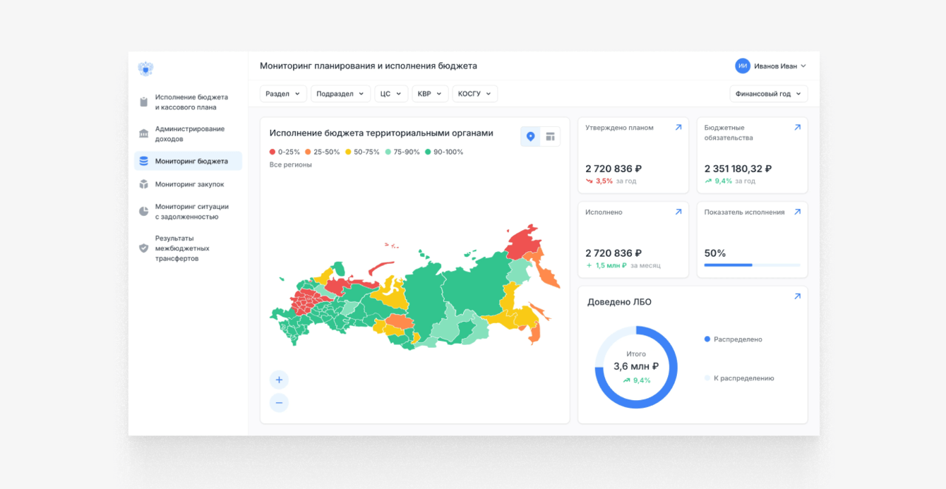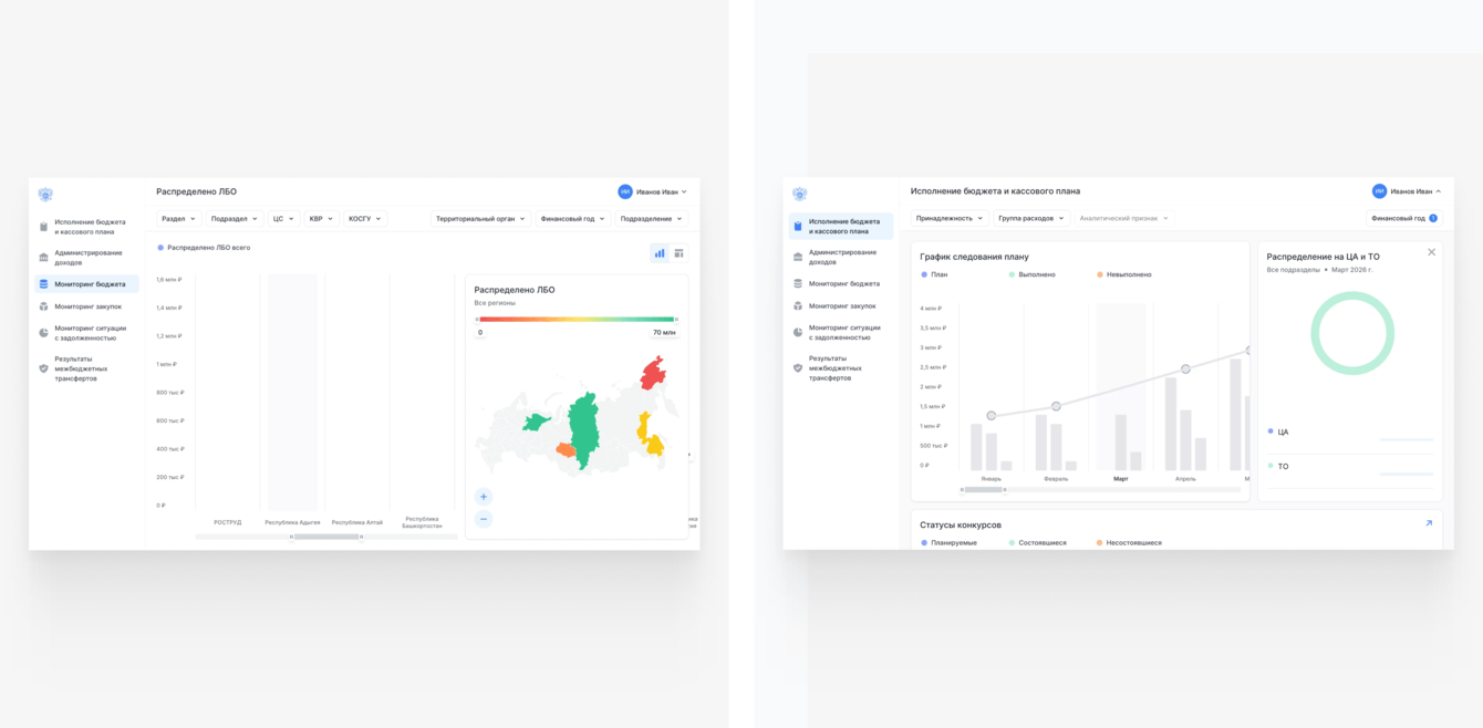 Нужно было создать дашборды, которые упростят работу с финансовыми показателями государственных органов и позволят: