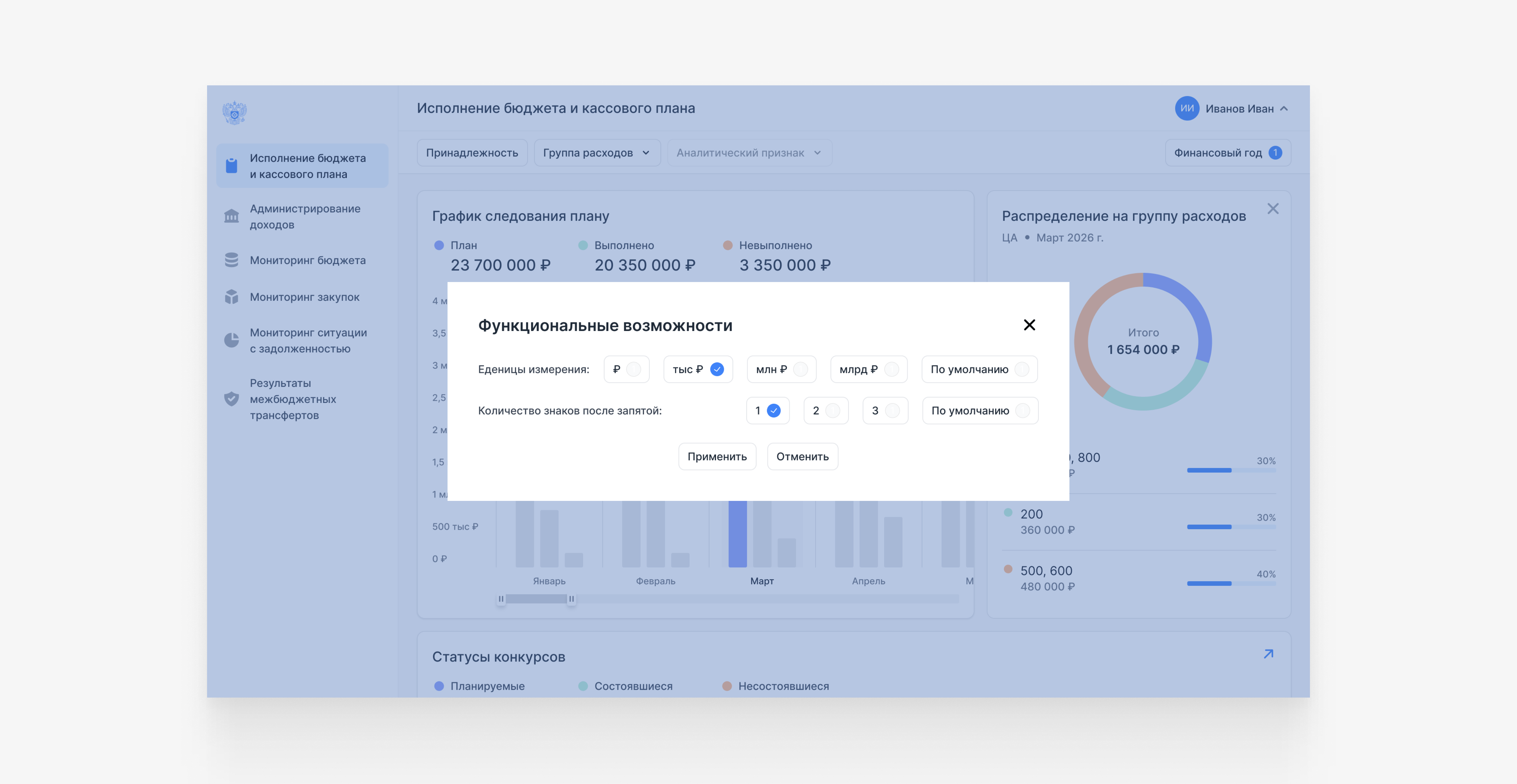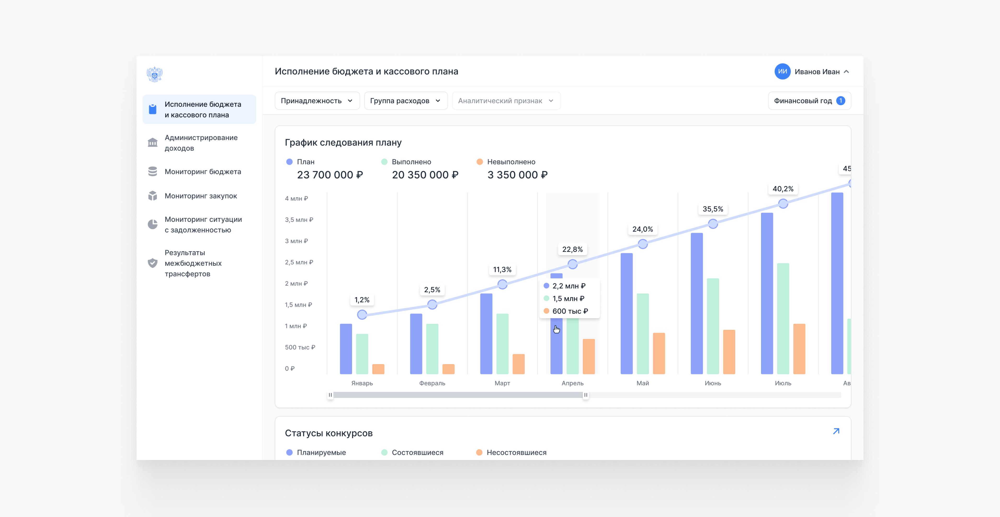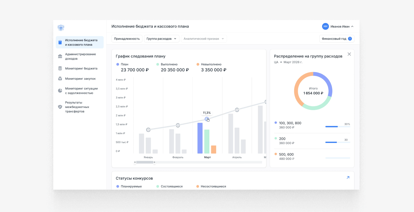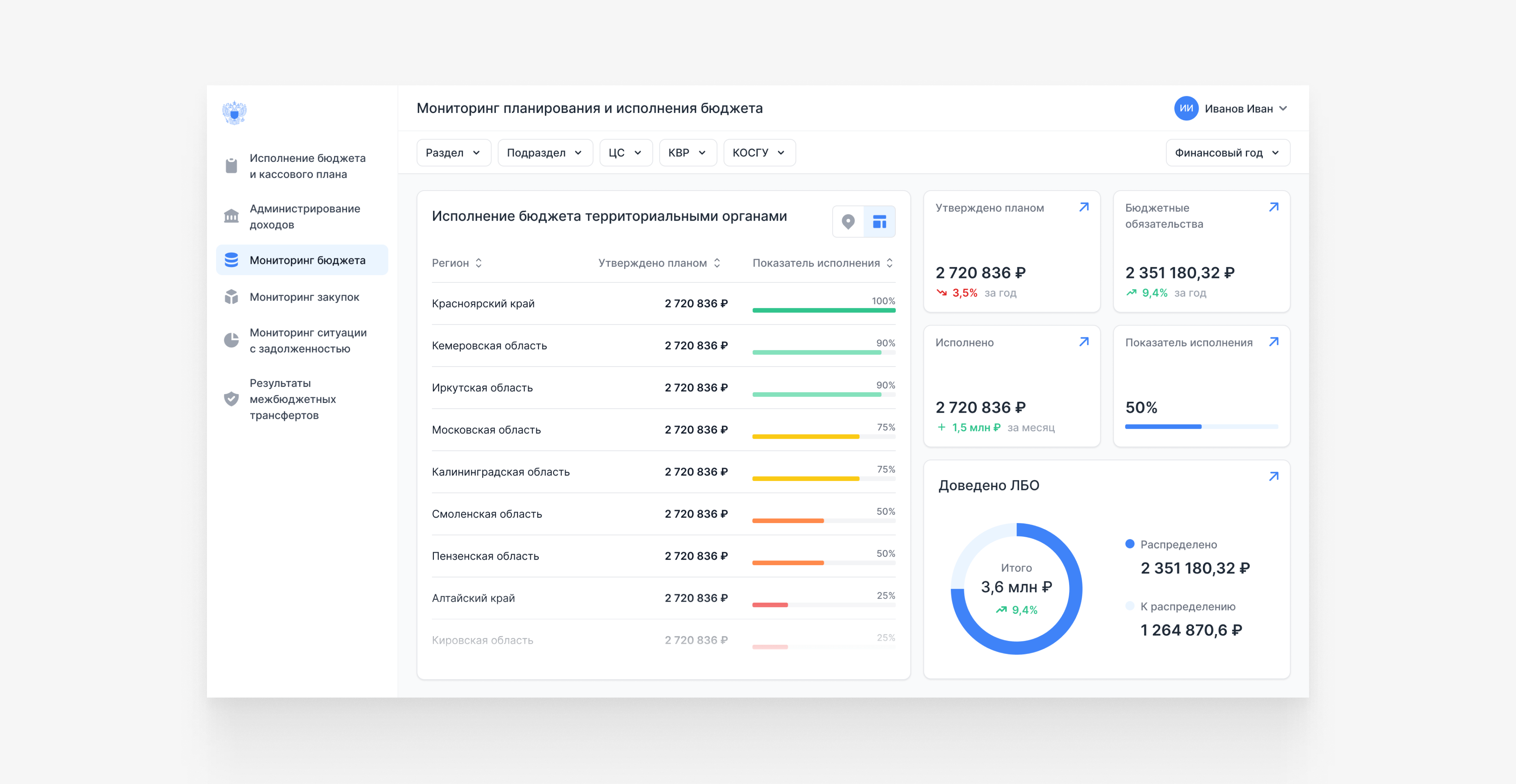 Нужно было создать дашборды, которые упростят работу с финансовыми показателями государственных органов и позволят: