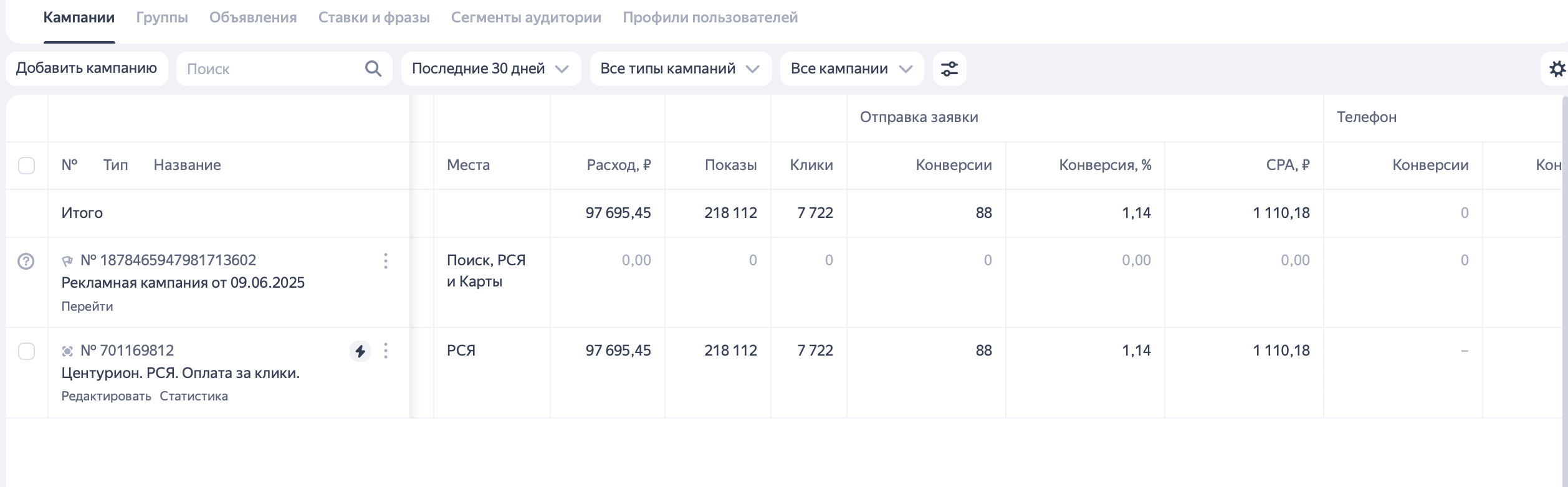 Мы полностью пересобрали РСЯ с расширенной семантикой и без жёстких ограничений, а поисковые кампании оптимизировали за счёт увеличения радиуса показа и добавления новых запросов. Во ВКонтакте запустили рекламу по тщательно подобранным аудиториям: руководители компаний, владельцы коммерческой недвижимости и лица, отвечающие за безопасность объектов. Нерелевантные сегменты были отключены, что позволило повысить долю целевых обращений.