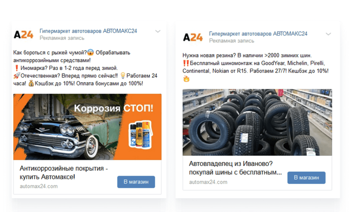 Создавали креативы с яркими изображениями, привлекающими внимание к проблеме, а также использовали «живые» фото из магазина: