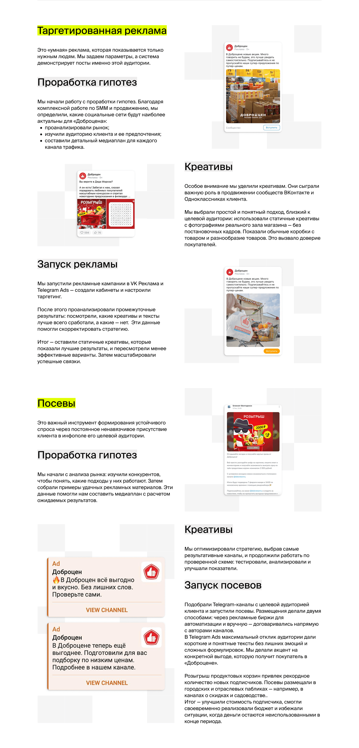 За короткий срок увеличить количество подписчиков в социальных сетях «Доброцена». Добиться стабильного роста новой аудитории.