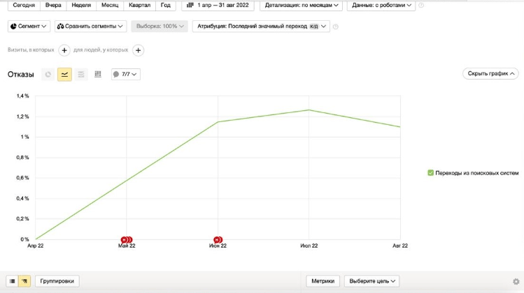 Показатель отказов с SEO-канала: