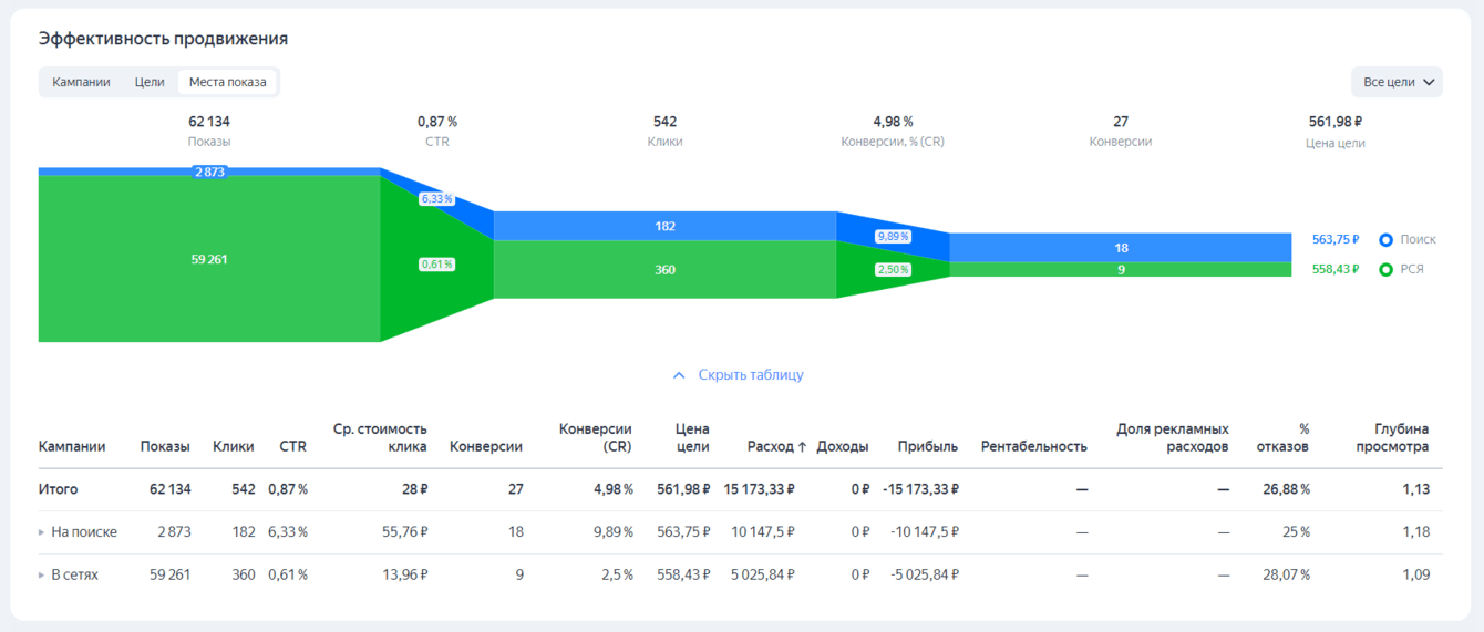 Но это не говорит о том, что клиент работает в минус, благо у него имеются постоянные и лояльные клиенты вне рекламы.