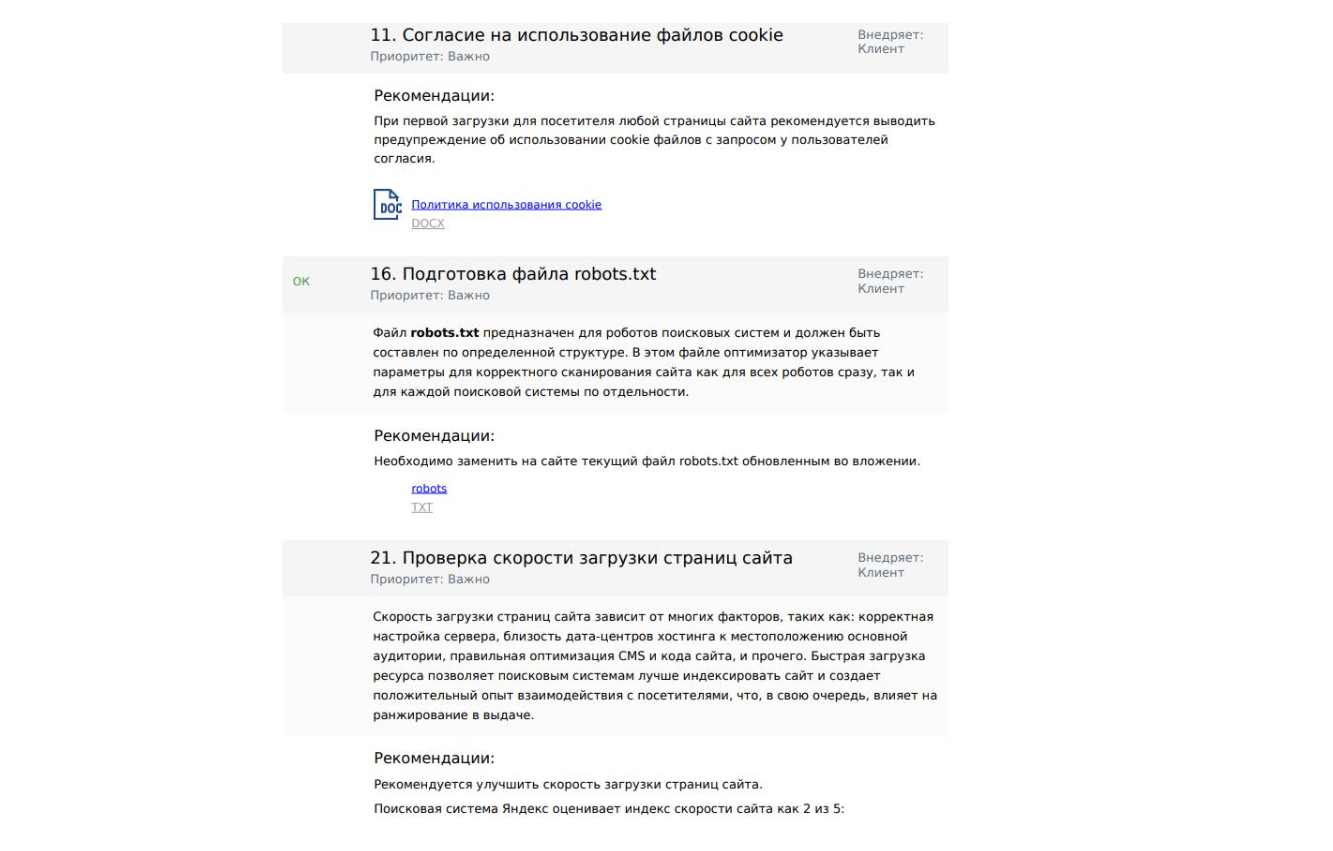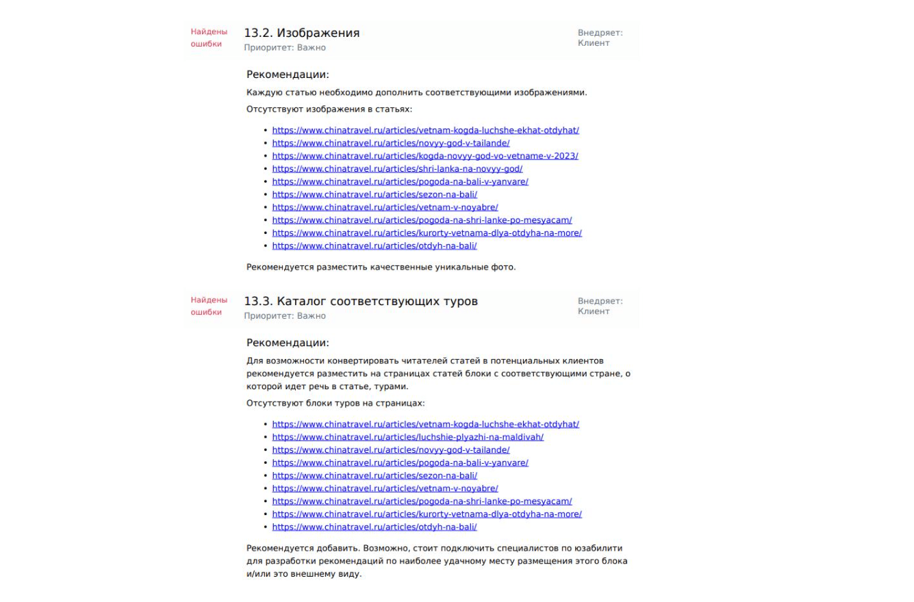 В первую очередь дали рекомендации по оптимизации контента и приведения статей к единообразному виду: содержание, структура с использованием релевантных интентов, визуал, коммерческий блок.