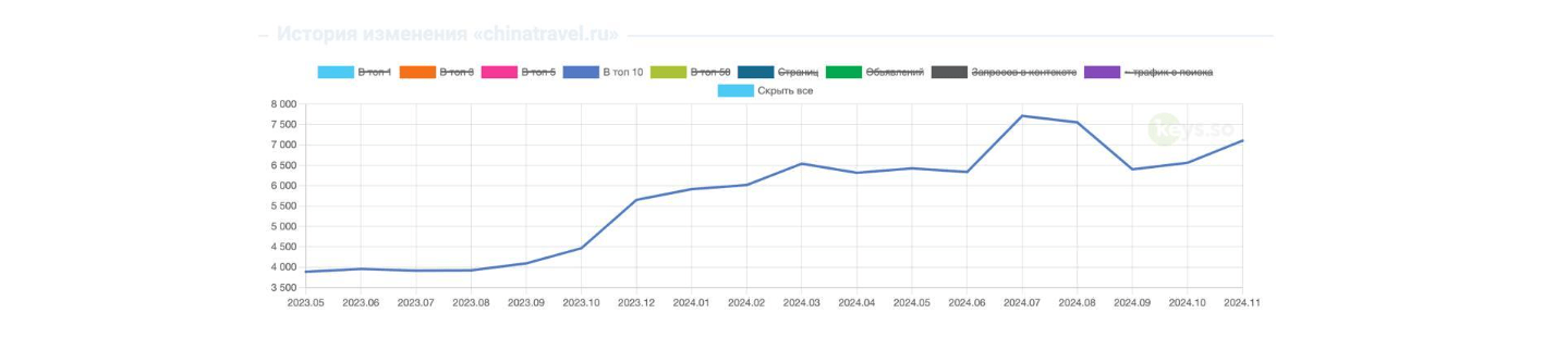 В 2023 году Китай наконец-то стал доступен для туризма. За это время видимость по запросам, связанным с Китаем, мы не потеряли, что сразу же дало большой прирост трафика.
