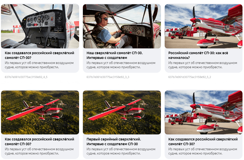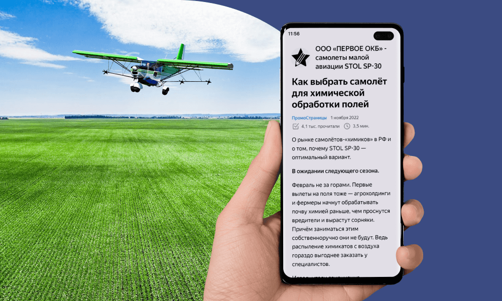 Промостраницы помогли нам подробнее рассказать о самолетах, о их производстве, о том как их выбрать и использовать, чего нельзя сделать через другие форматы рекламы. В итоге получилось, сложность ниши можно легко и интересно подать через Промостраницы.