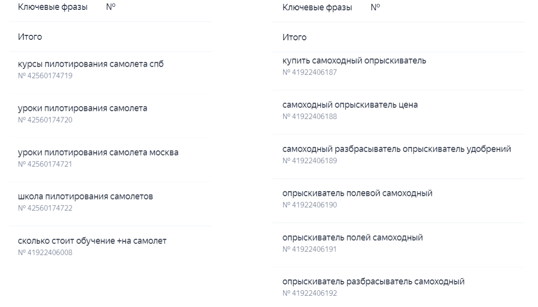 Кампания на поиске была запущена только с целевыми фразами, для кампании РСЯ мы также добавили околоцелевые фразы, чтобы расширить охват. Пример фраз по околоцелевой тематике: