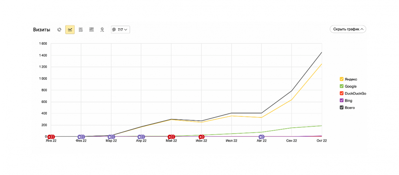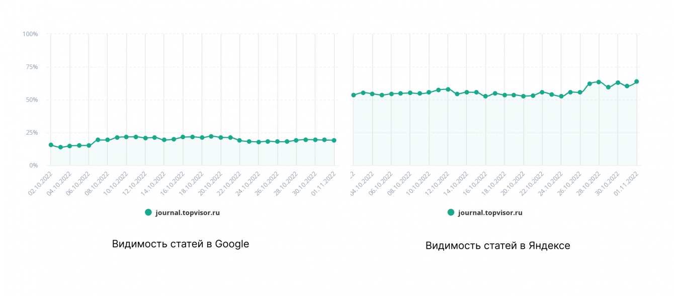 В октябре 12 статей принесли более 1400 переходов на Топвизор-Журнал. За весь период статьи получили около 3800 переходов. Это отличный результат, ведь большинству статей было всего два месяца с момента публикации.