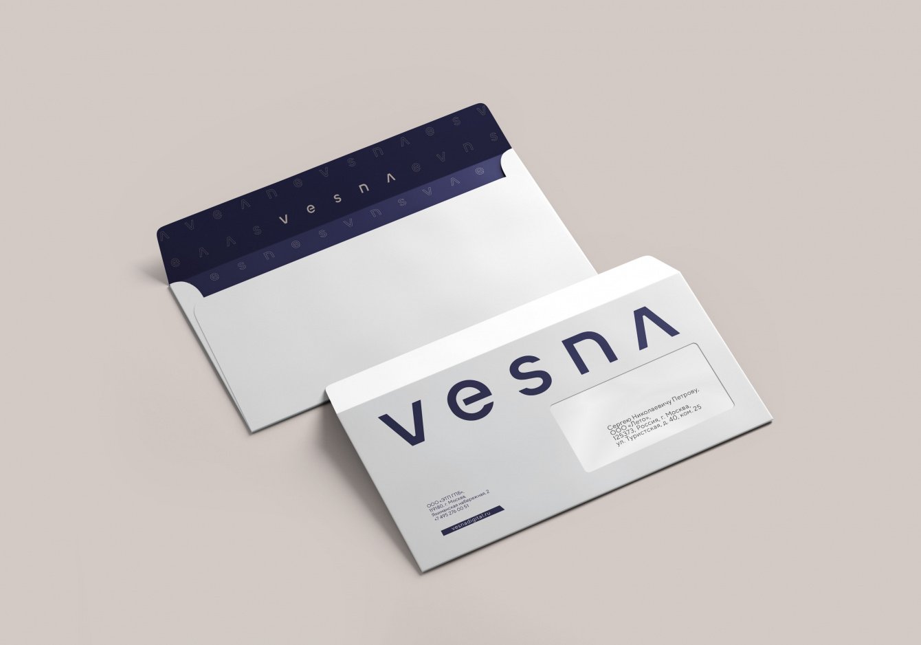 В представительской и презентационной продукции компании используются фирменная цветовая гамма и паттерн из литер VESNA.