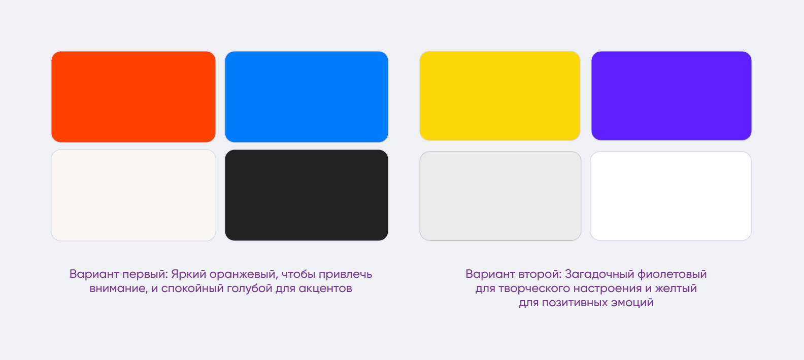 Сначала предложили такие цвета — отталкивались от того, что конкуренты не используют подобные сочетания, и это поможет создать уникальный стиль.