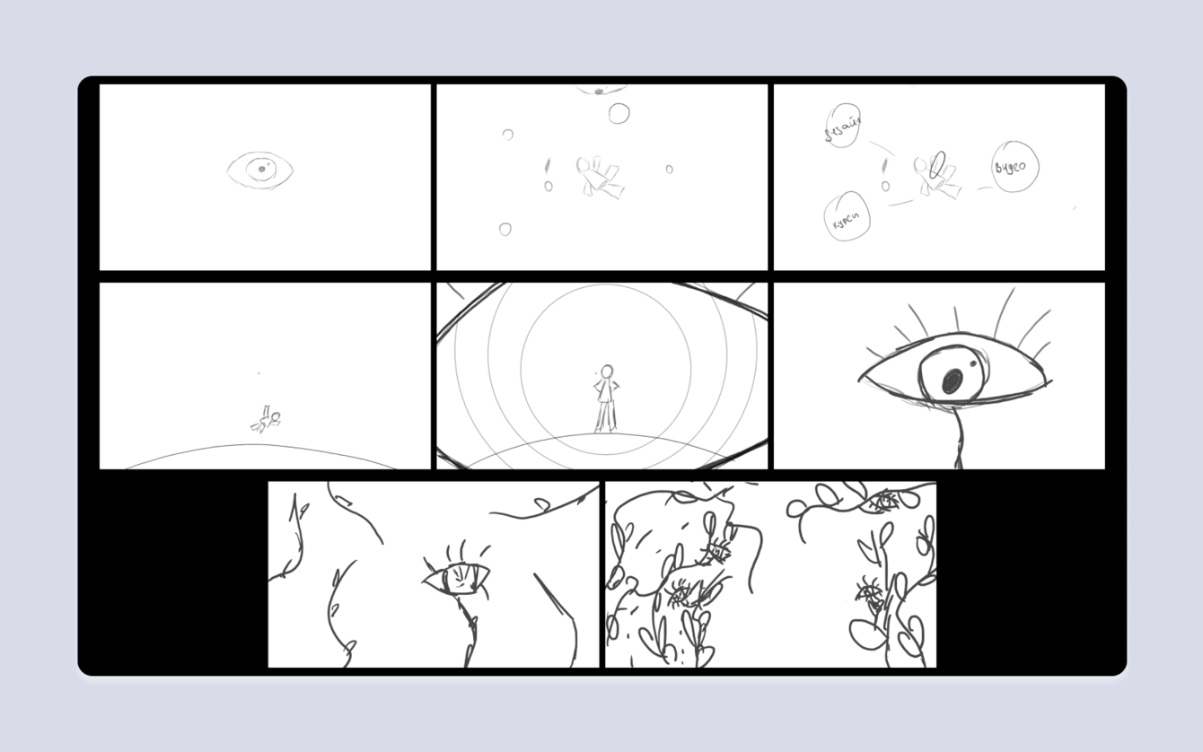 Статичные кадры ожили, когда мы сделали аниматик: раскадровку для видео без детальной визуализации. Это немного напоминает черно-белый вайрфрейм, когда мы продумываем расположение элементов для интерфейса.