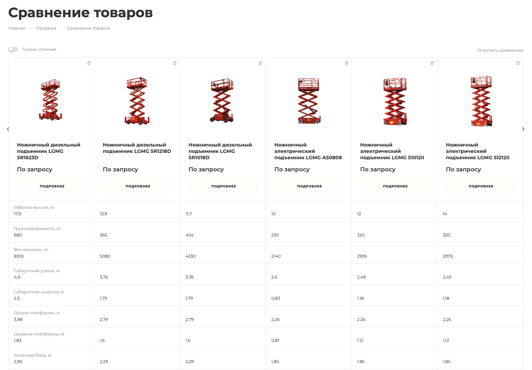 Мы добавили на сайт специальную функцию, которая предоставляет возможность сравнить товары между собой по разным показателям