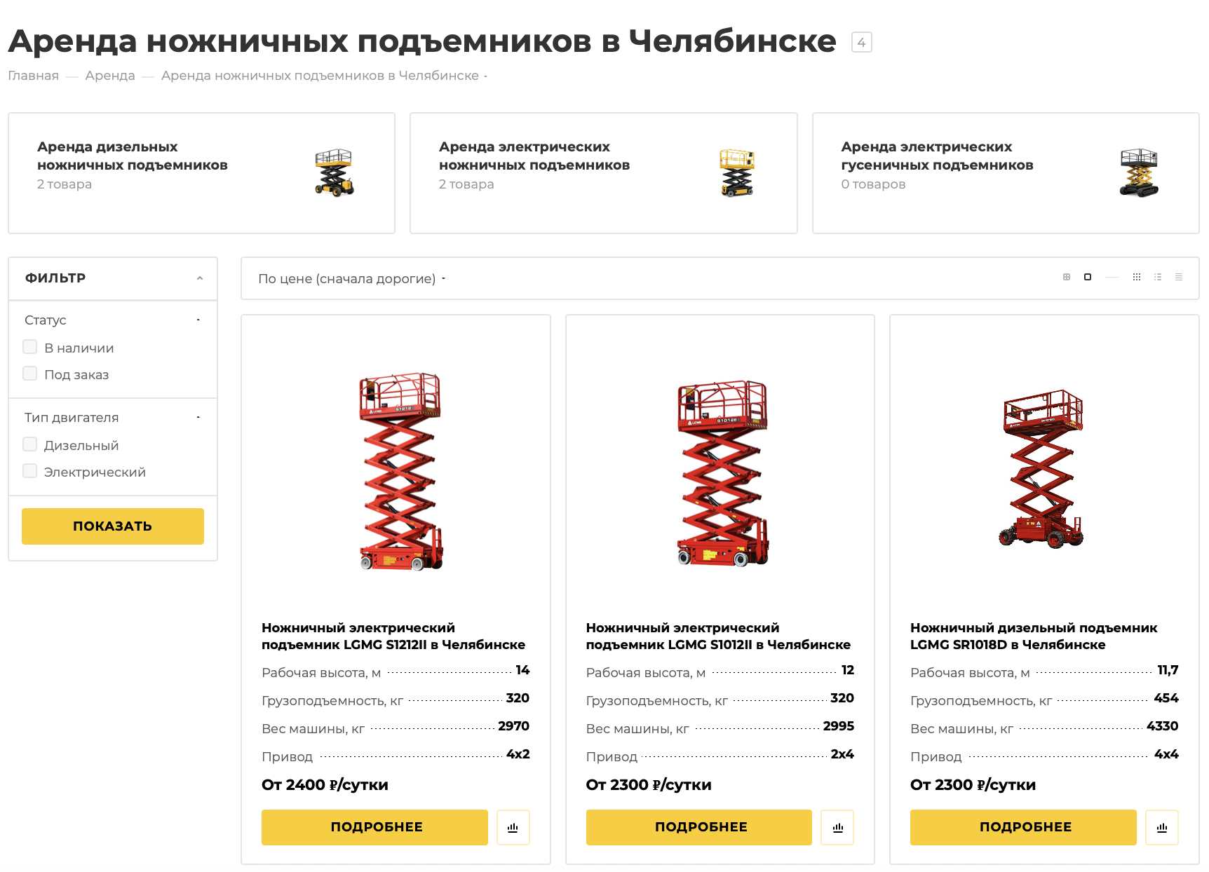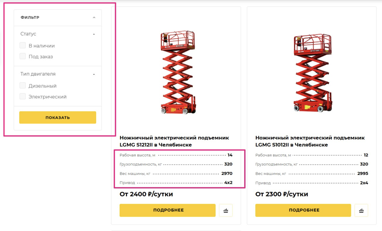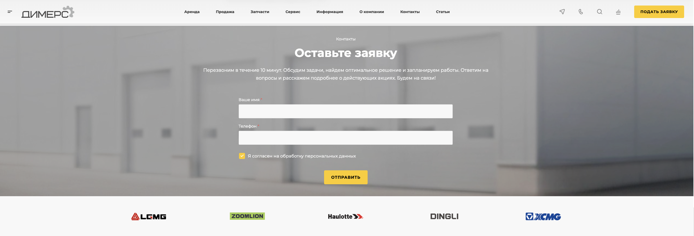 Кроме того, для клиента важно было, чтобы на сайте была возможность удобно и быстро оформить заявку на аренду или связаться по вопросу покупки техники.