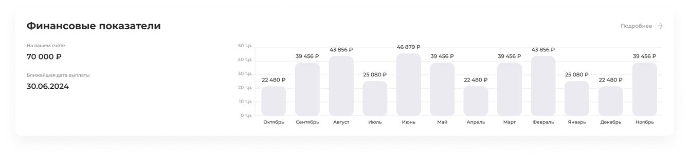 7. Финансы — в этом разделе можно увидеть свой финансовый результат, подписать акты, посмотреть текущие и архивные оферты.