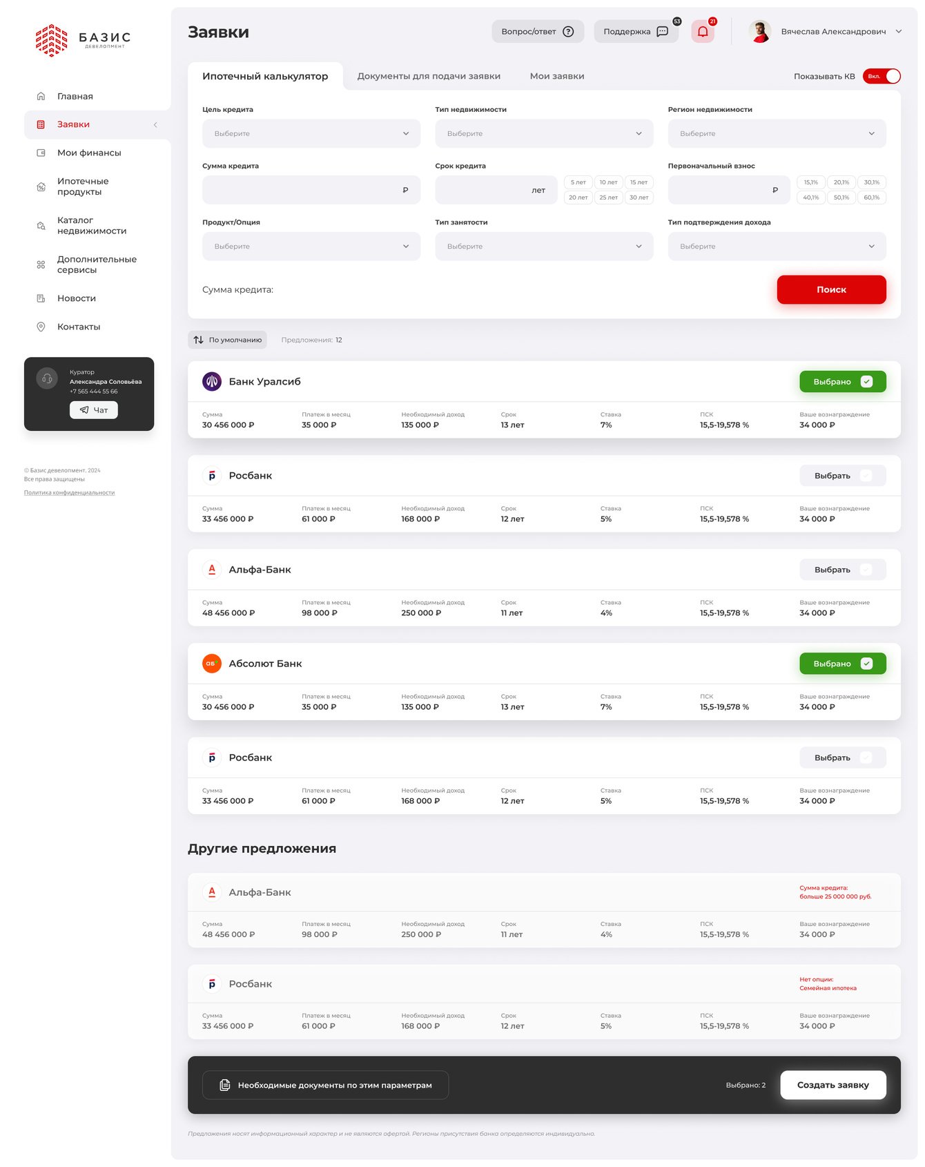 Интерфейс создавался под задачи опытных агентов, которые работают с ипотекой каждый день. Они ожидают от системы такой же прозрачности и гибкости, как от банковских платформ.