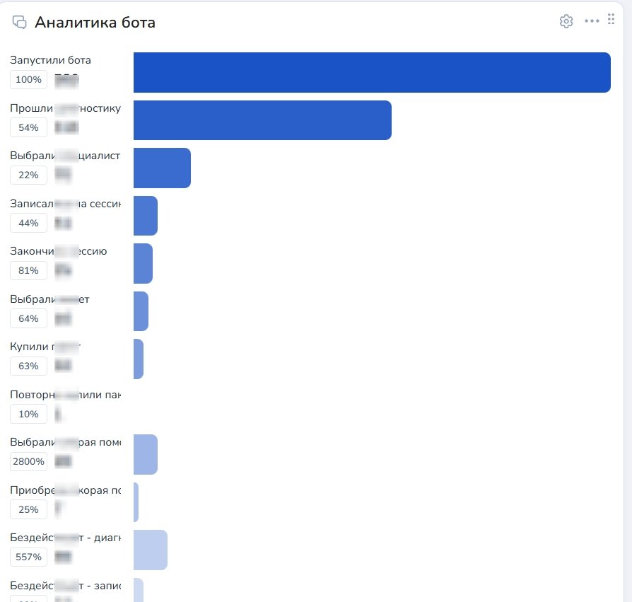Конверсия - 54% из запуска бота в прохождение диагностики.