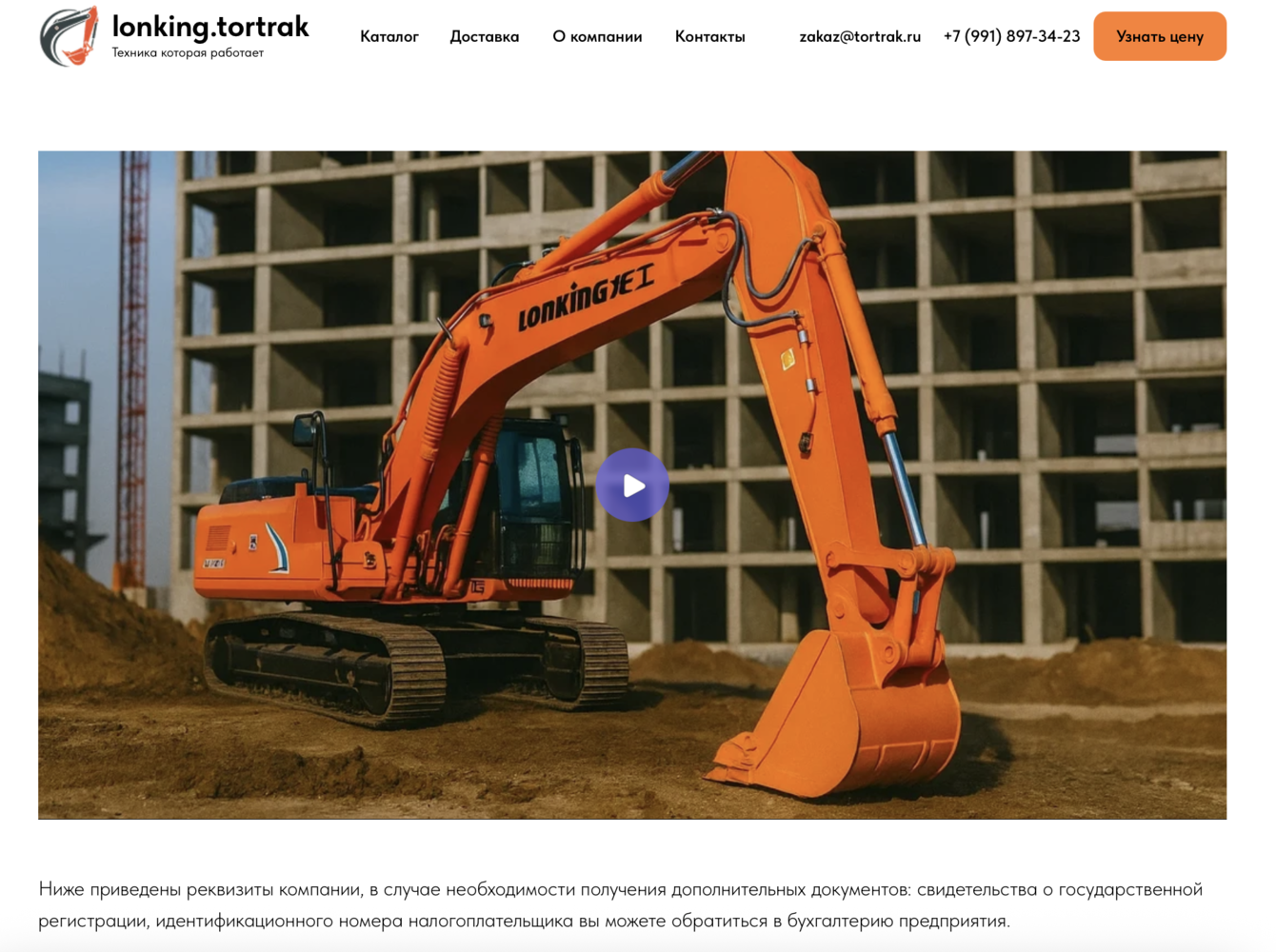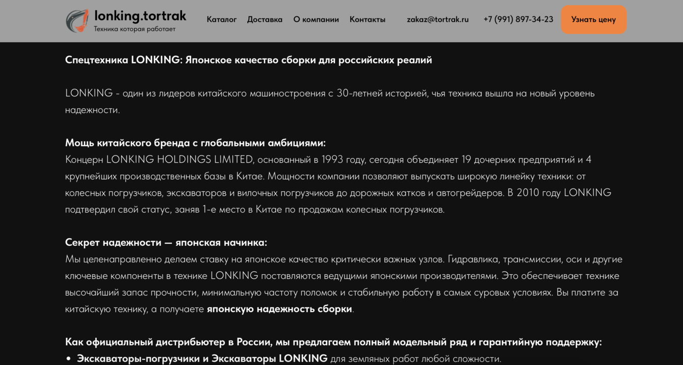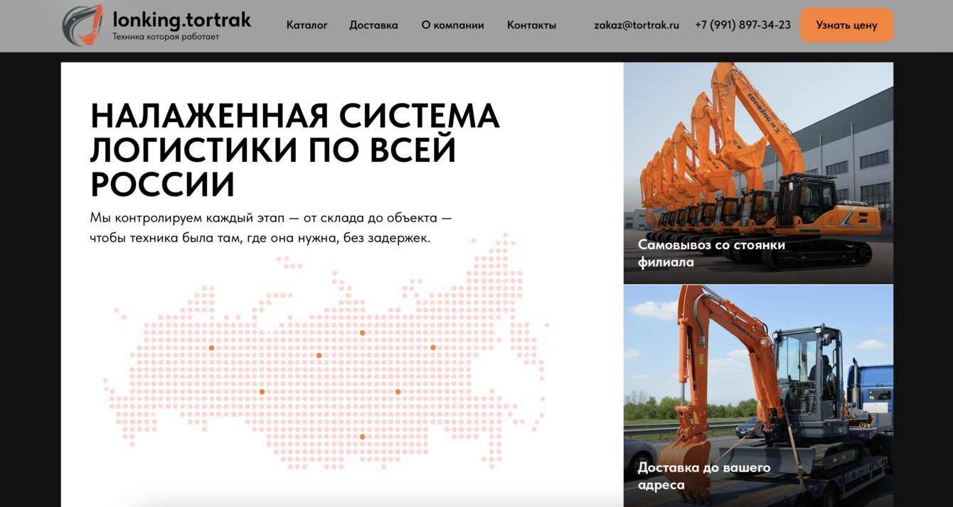 На данный момент компания Тортрак стала официальным дилером техники LONKING! Поэтому перед нами появилась задача в создании дополнительного сайта для продажи экскаваторов LONKING.