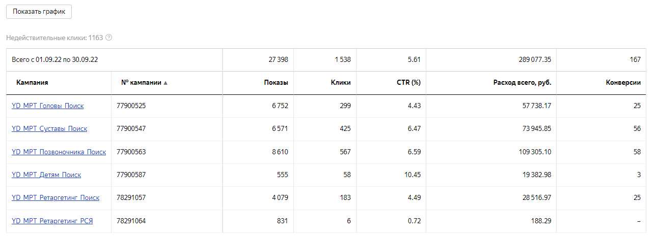 Данные представлены из рекламного кабинета Яндекс.Директ.