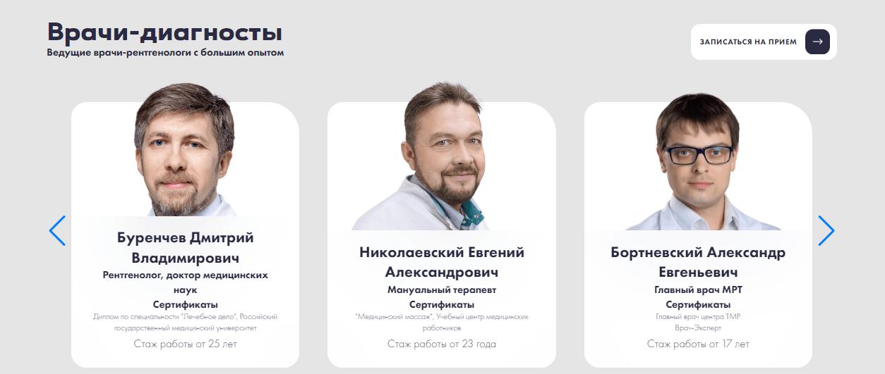 ‣ Добавили на страницы услуг блок с врачами в виде слайдера: