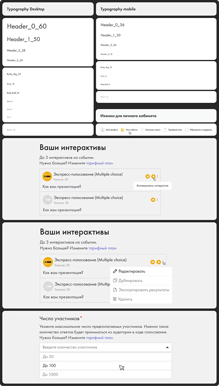 Предусмотрели все поп апы (всплывающие окна) и отрисовали каждый пиксель, с пояснениями, что в каком случае должно открываться и как срабатывать. Проработали весь путь от регистрации и создания голосования, до экспорта и анализа результатов.
