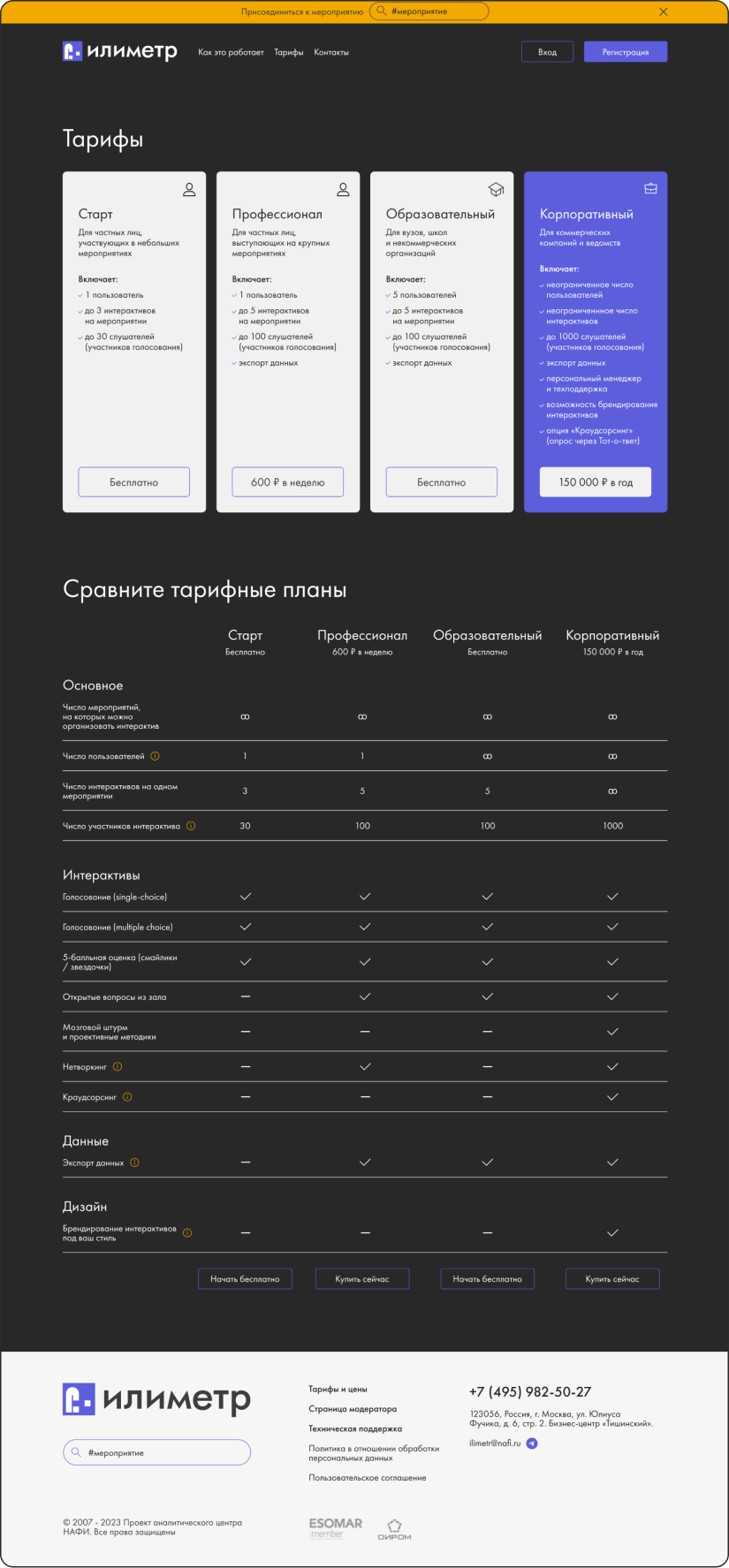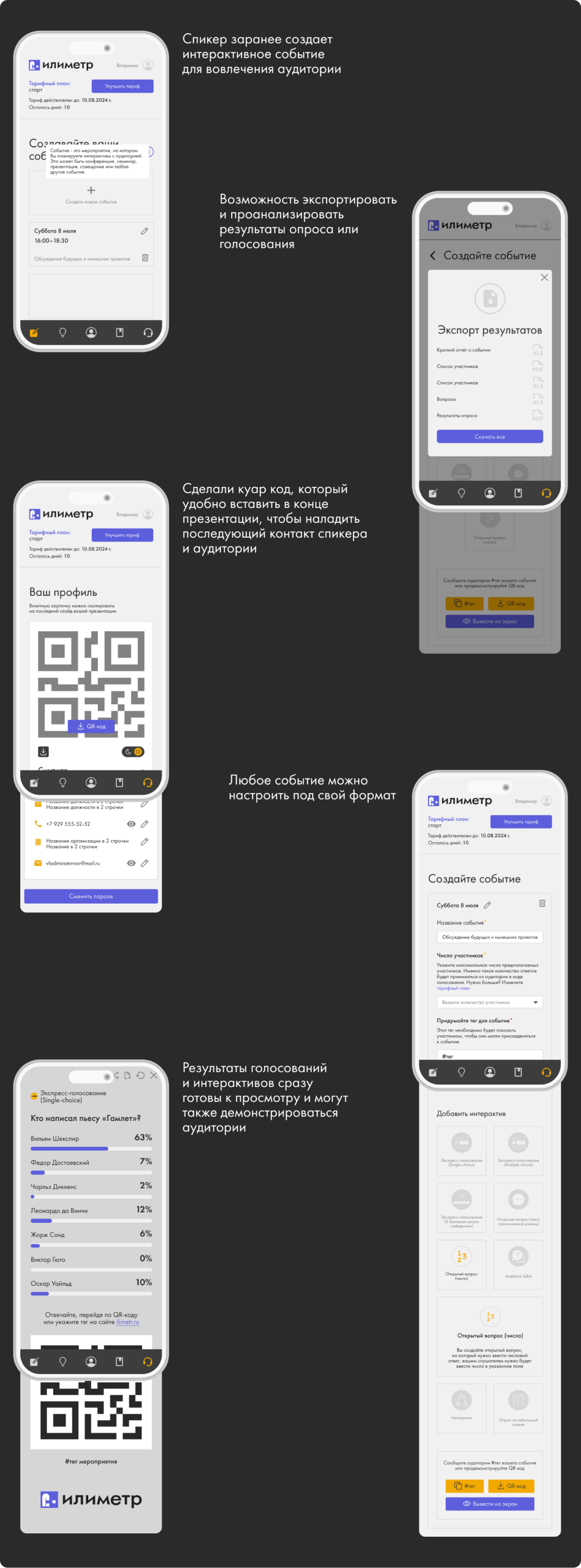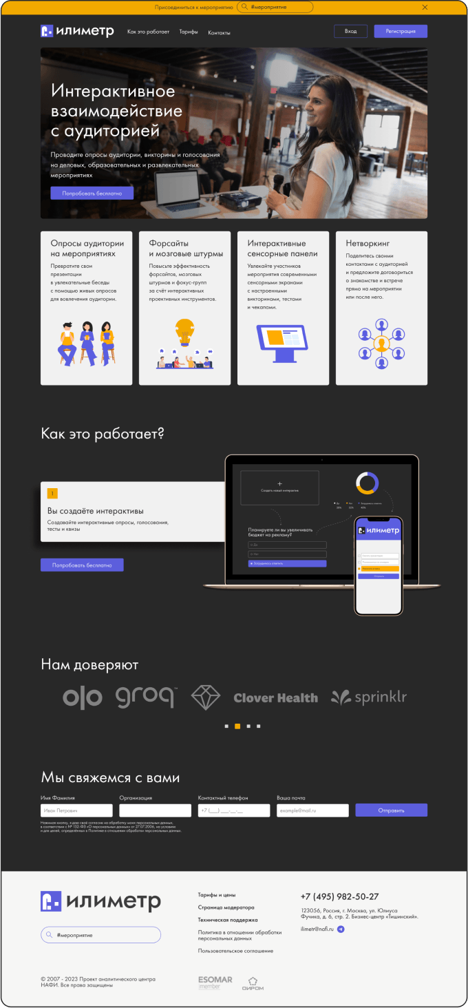 Проект должен занять место ушедших из России сервисов по типу slido, вывести на новый уровень отношения спикера и аудитории усилив их коннект и упростить коммуникацию.Заказчик обратился к нам с запросом заказать создание и разработку дизайна сайта.