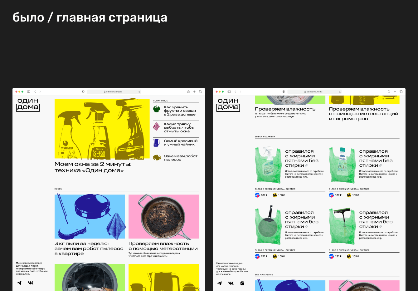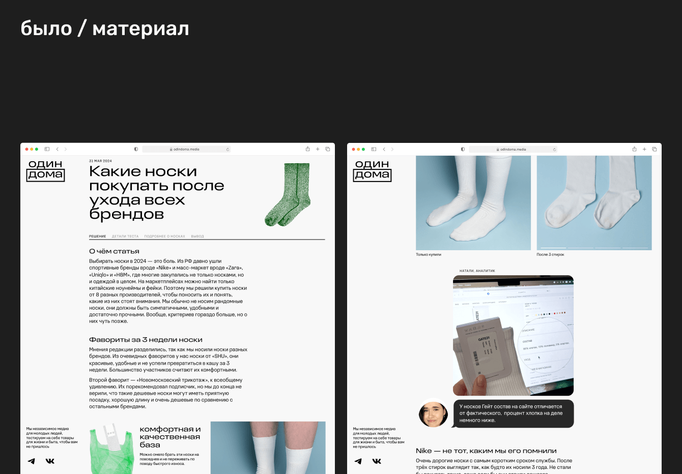 Мы разработали собственный метод и делаем лучшие тесты бытовых товаров в России. Для этого выбрали инструмент — классическое медиа с гигантскими текстовыми лонгридами. Это идёт вразрез с трендами рынка и советами экспертов по бренд-медиа, но мы были уверены, что только этот формат позволит нам доказательно и подробно рассмотреть тему, будь то выбор швабры или метод заваривания кофе в дрип-пакетах. Так мы запустили «Один дома» в декабре 2023 года. Максимум пользы и духоты, минимум видео и мемов.