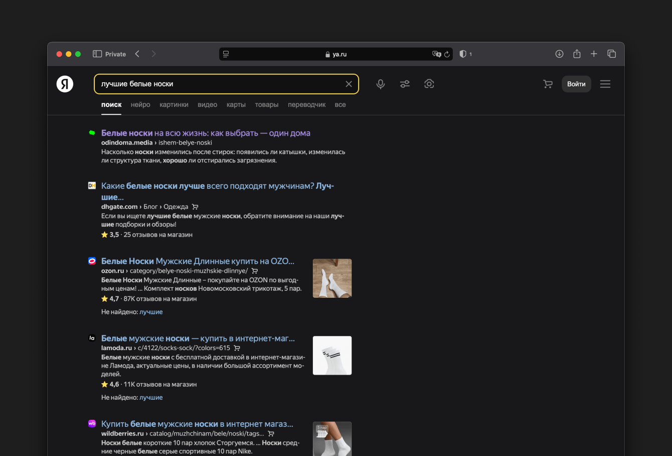 Поэтому мы решили измерять CTR на количество кликов по товарам. Большую часть проекта у нас не было ссылок, и мы ориентировались только на вебвизор: анализировали поведение пользователей, копируют ли они название товара, возвращаются ли на сайт.