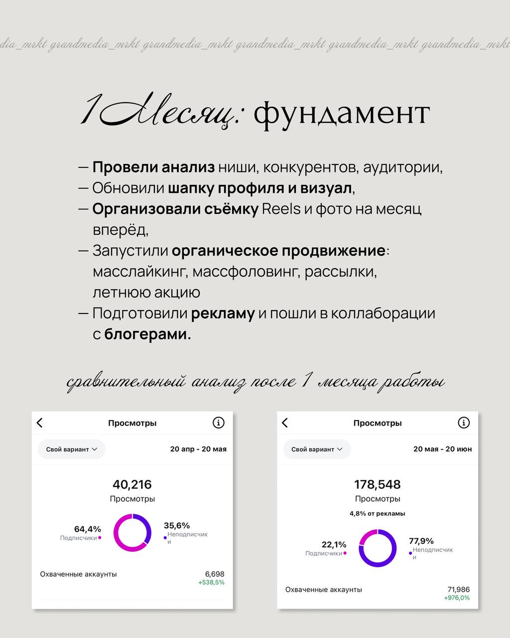 Я безумно довольна результатом! Работа выполнена с вниманием к деталям и полностью соответствует моим ожиданиям. Видно, что каждый момент продуман до мелочей, результат всегда превосходит все ожидания. Особенно ценю, что мы всегда чётко формулируем цели и достигаем их. Всё, что делается, очень точно отражает наш бизнес, наши ценности и индивидуальность бренда. Не так просто найти команду, которая действительно чувствует твоё видение, но с Grand Media работа просто идеальна. Мы всегда на одной волне, и это невероятно важно. С полной уверенностью могу рекомендовать вас! Искренне благодарна и счастлива быть частью этого сотрудничества.