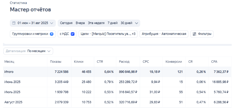 Оптимизировали площадки в РСЯ, установили понижающие корректировки на нецелевую аудиторию, чтобы показы шли по более качественной аудитории.