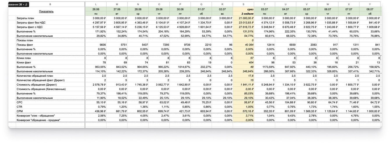 Мы убеждены, что успех рекламной кампании заключается в ежедневном контроле и заполнении отчетности, где контекстолог заполняет, руководитель контролирует, а клиент в любой момент может зайти и посмотреть результаты. Это позволяет нам всегда держать руку на пульсе и вовремя реагировать на изменения в кампаниях.