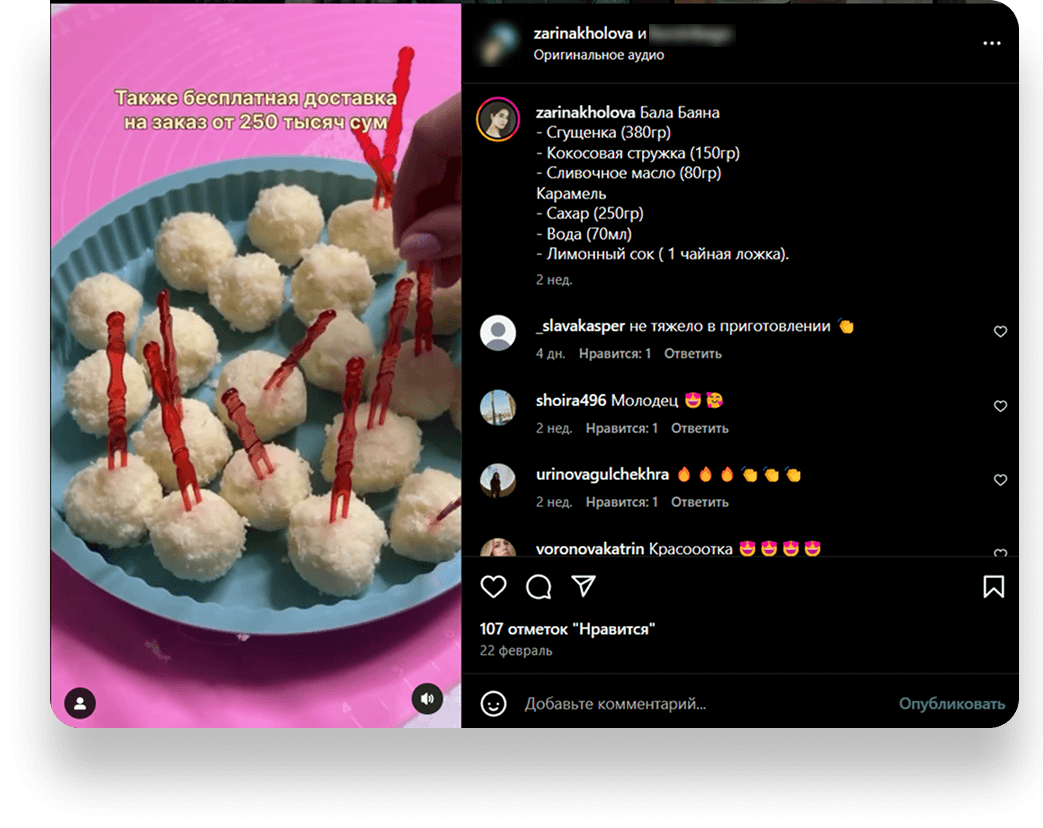 Тем не менее, первые тесты показали, что бартер может быть эффективной заменой оплате. Даже при минимальных вложениях — номинал промокодов составлял около $23 — контент получался искренним, нативным, и начинал собирать реальные охваты. Кроме того, бизнес фактически возвращал часть вложений: промокоды активировались внутри экосистемы клиента. Этот экономически устойчивый подход дал уверенность в правильности выбранного направления.