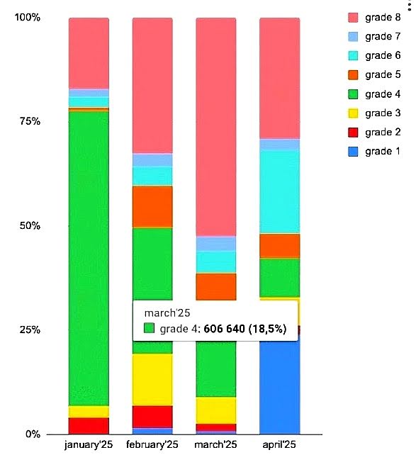 Эта система оказалась эффективной: низшие грейды начали постепенно вытесняться, а доля восьмого — самого высокого — грейда выросла с менее чем 20% до почти 40% от всей партнёрской базы. Одновременно стоимость охвата начала снижаться: в сравнении с первым грейдом CPM упал почти в 10 раз.