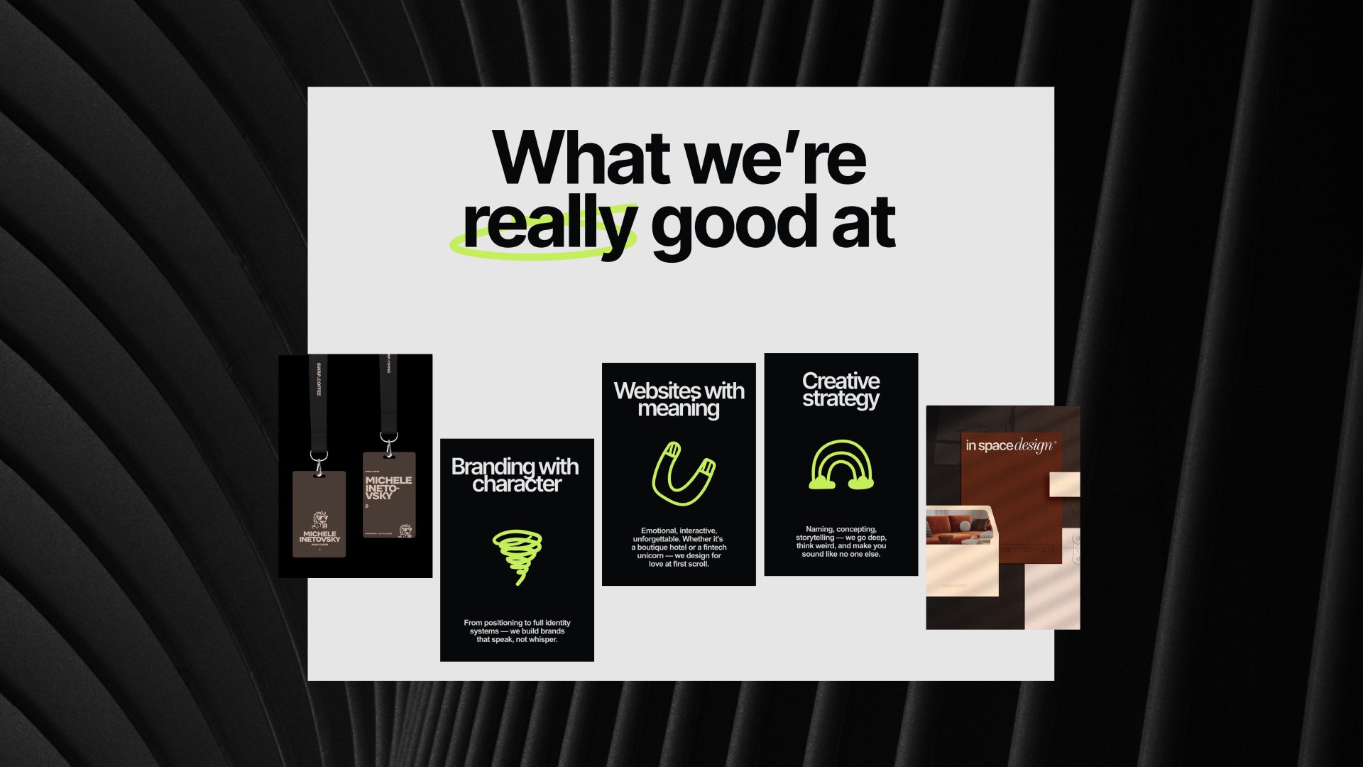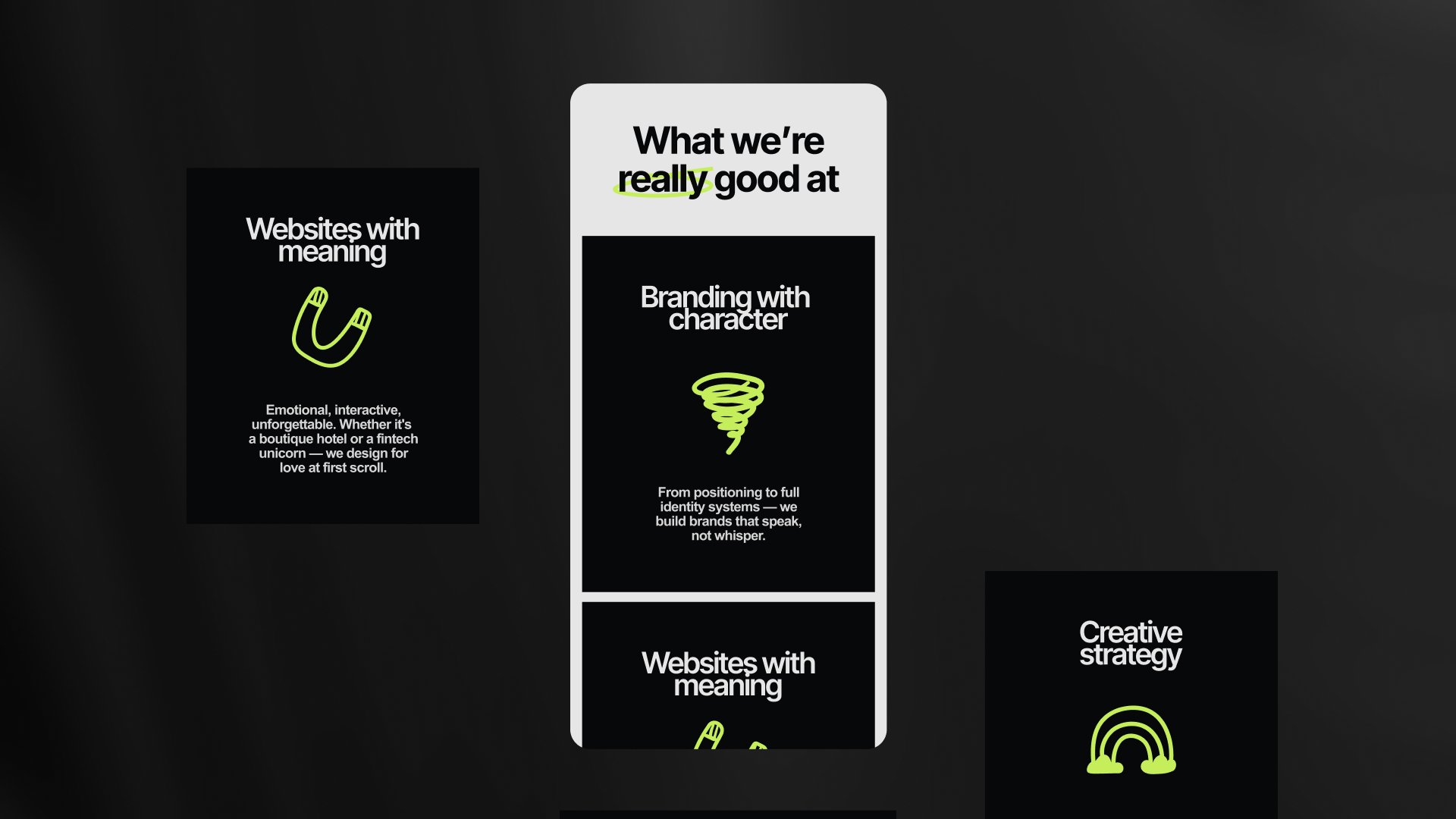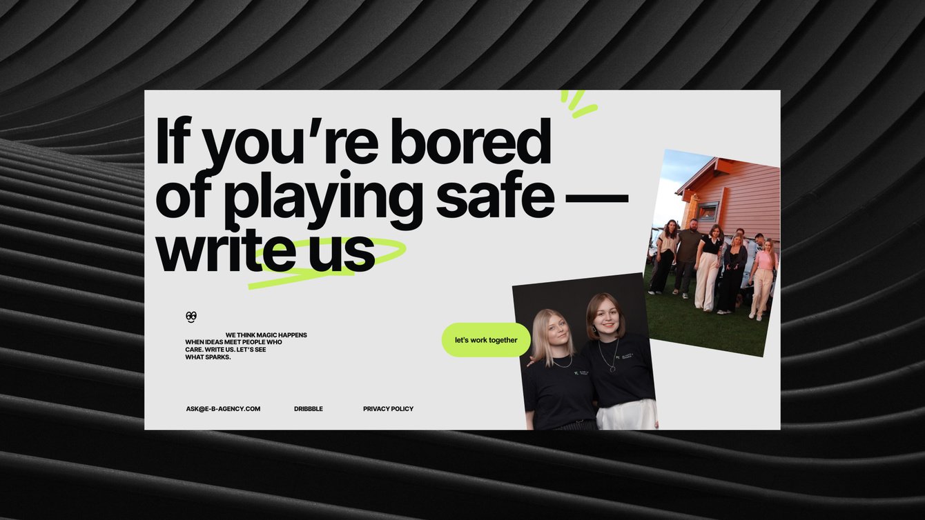 В итоге получился сайт, который работает не только как портфолио, но как полноценное знакомство с нами и нашим характером. Он смелый, местами даже дерзкий, но при этом выстроенный, уверенный и профессиональный.