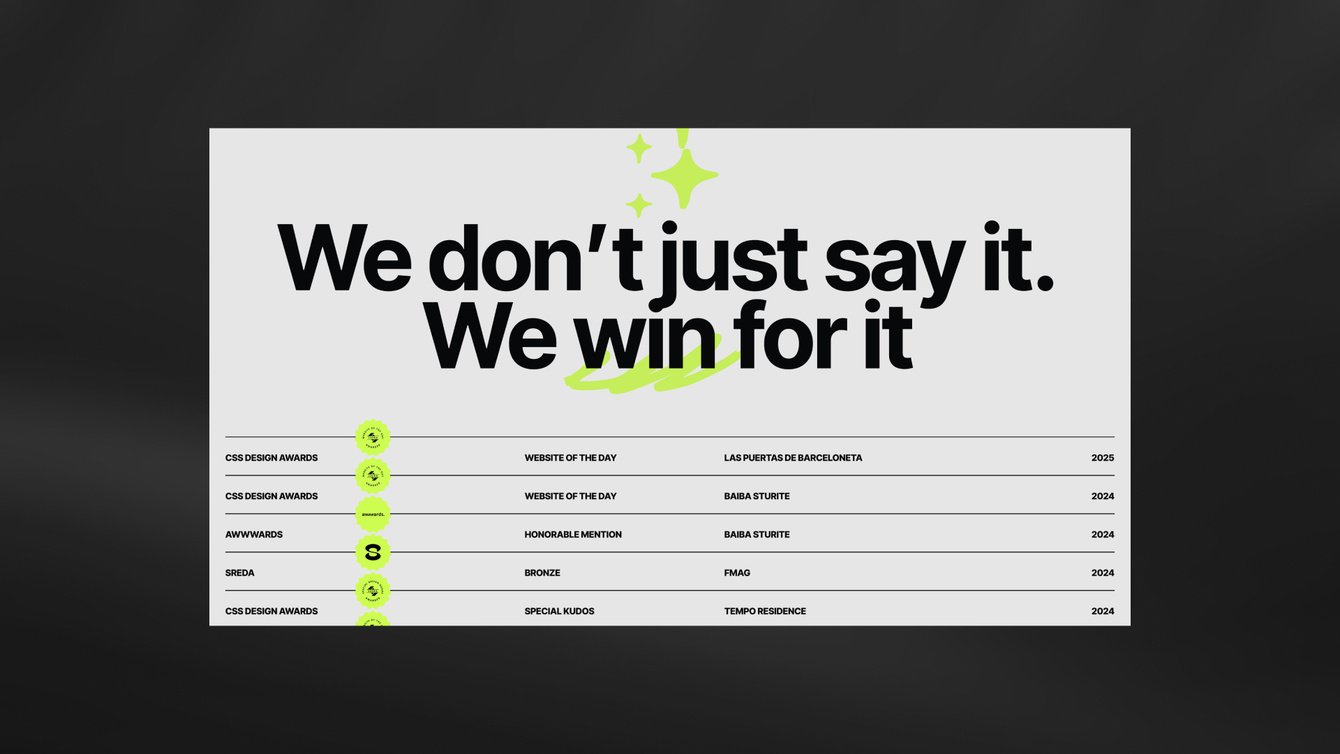 Свою экспертность подчеркнули блоком с многочисленными наградами за проекты, над которыми мы работали в течение трех лет.