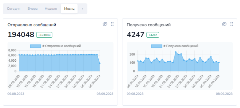 Ботом было отправлено 194 тыс. сообщений, получено от пользователей – 4,2 тыс. сообщений за месяц.