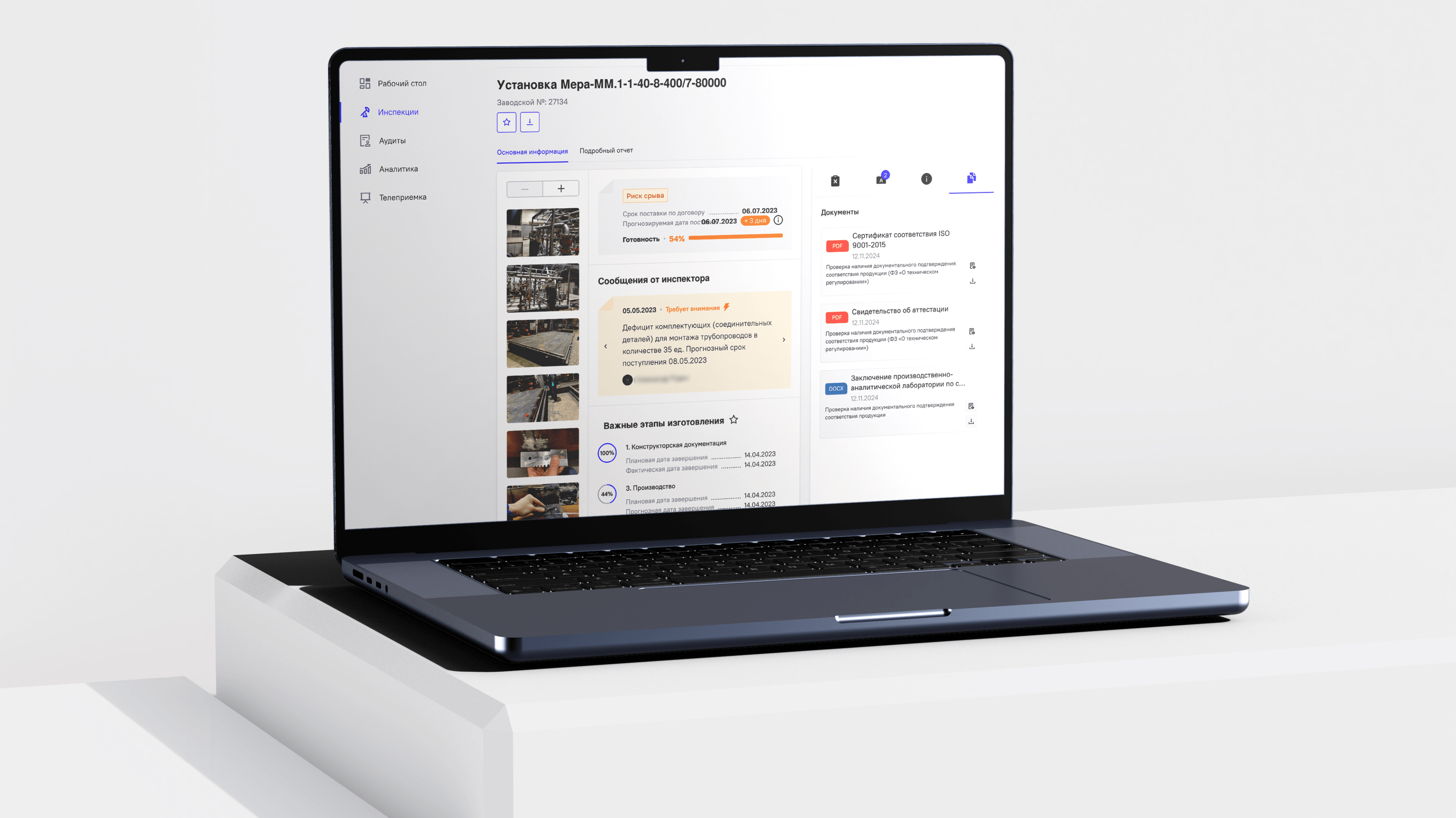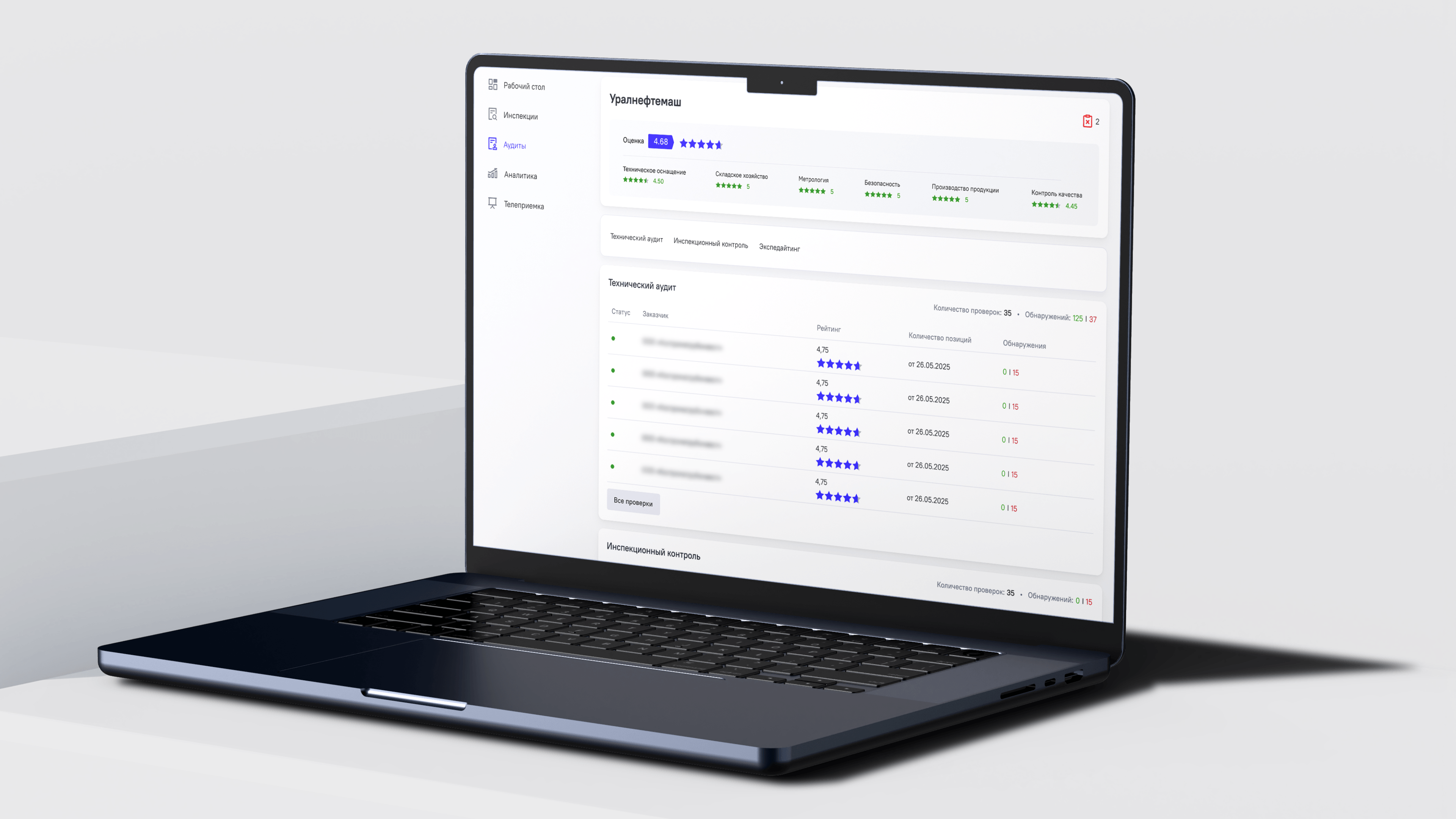 Это первый модуль, который закрывал самую болезненную точку — выбор поставщика. Команда разработала систему технического аудита с настраиваемыми чек-листами под конкретное оборудование, отрасль и требования заказчика. Инспектор приезжает на завод, фиксирует фото и видео цехов, загружает сканы документов, а платформа сама формирует отчет с рекомендациями и присваивает поставщику рейтинг.