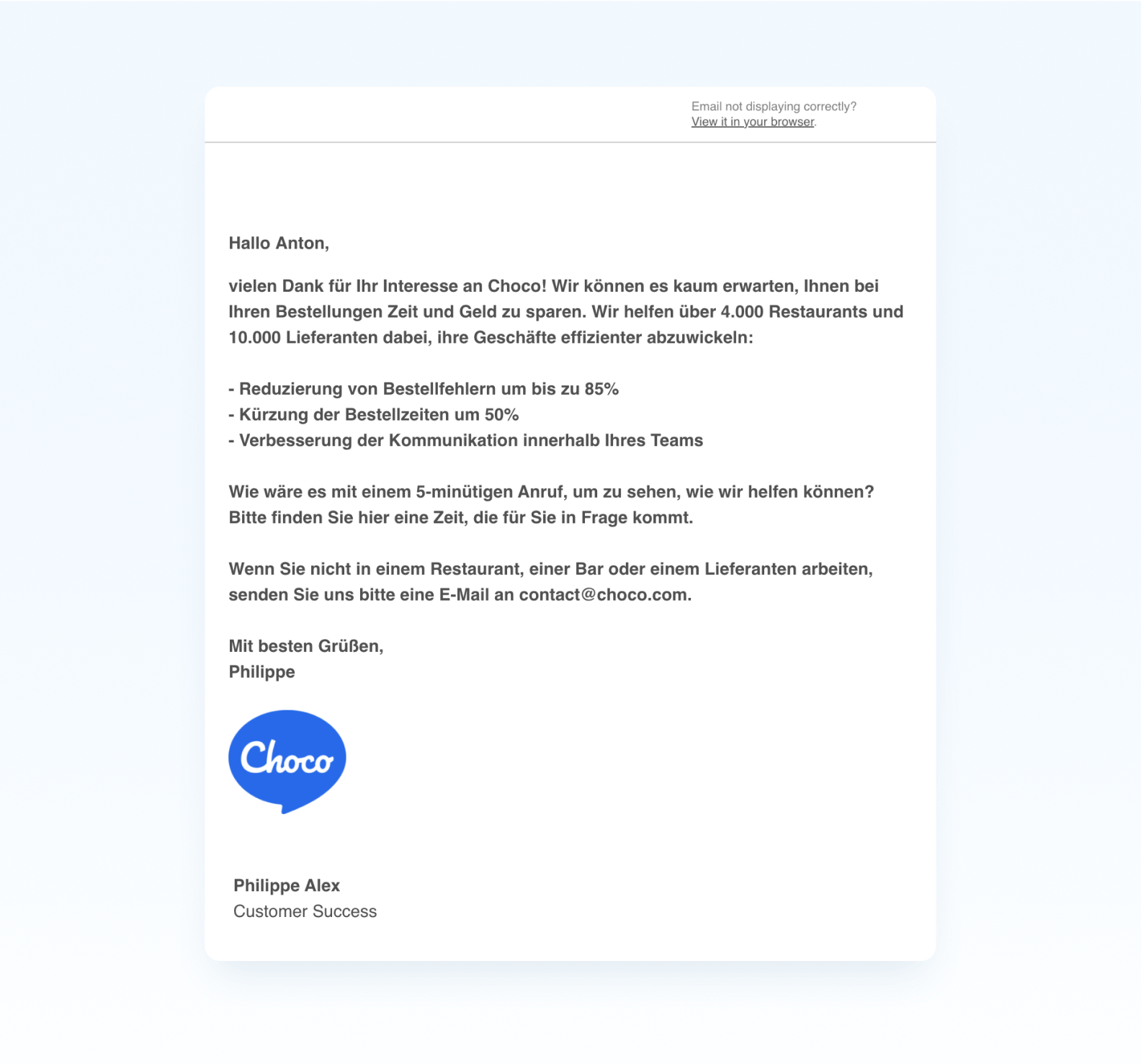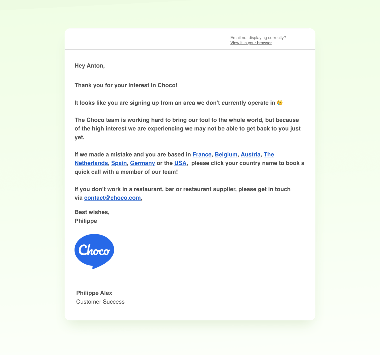 Choco тогда еще изучали своих пользователей, чтобы дорабатывать приложение. Поэтому прежде чем получить доступ, каждый новый пользователь общался с аккаунт-менеджером Choco.