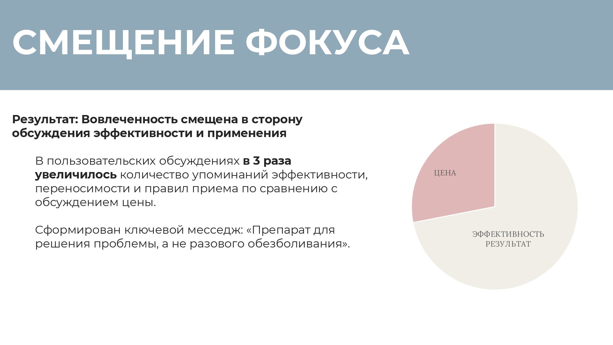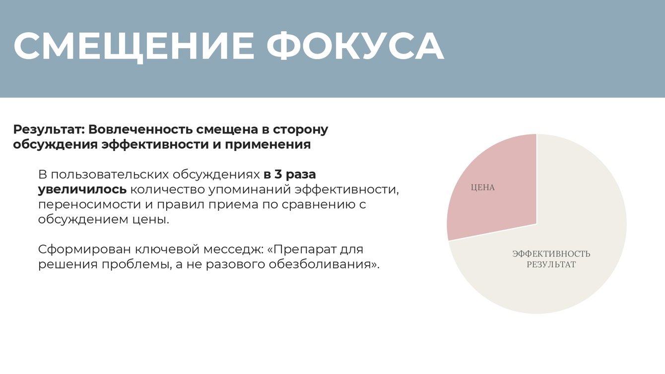 Сформирован ключевой месседж: «Препарат для решения проблемы, а не разового обезболивания».