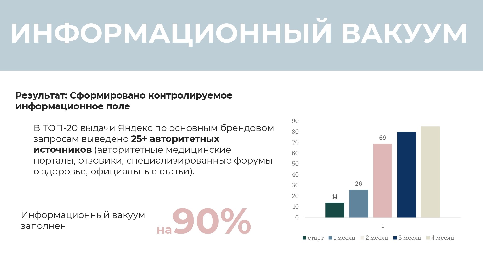 В топ-20 выдачи Яндекс по основным брендовым запросам представлено более 25 авторитетных источников. Среди них — медицинские порталы, отзовики, специализированные форумы о здоровье и официальные статьи.
