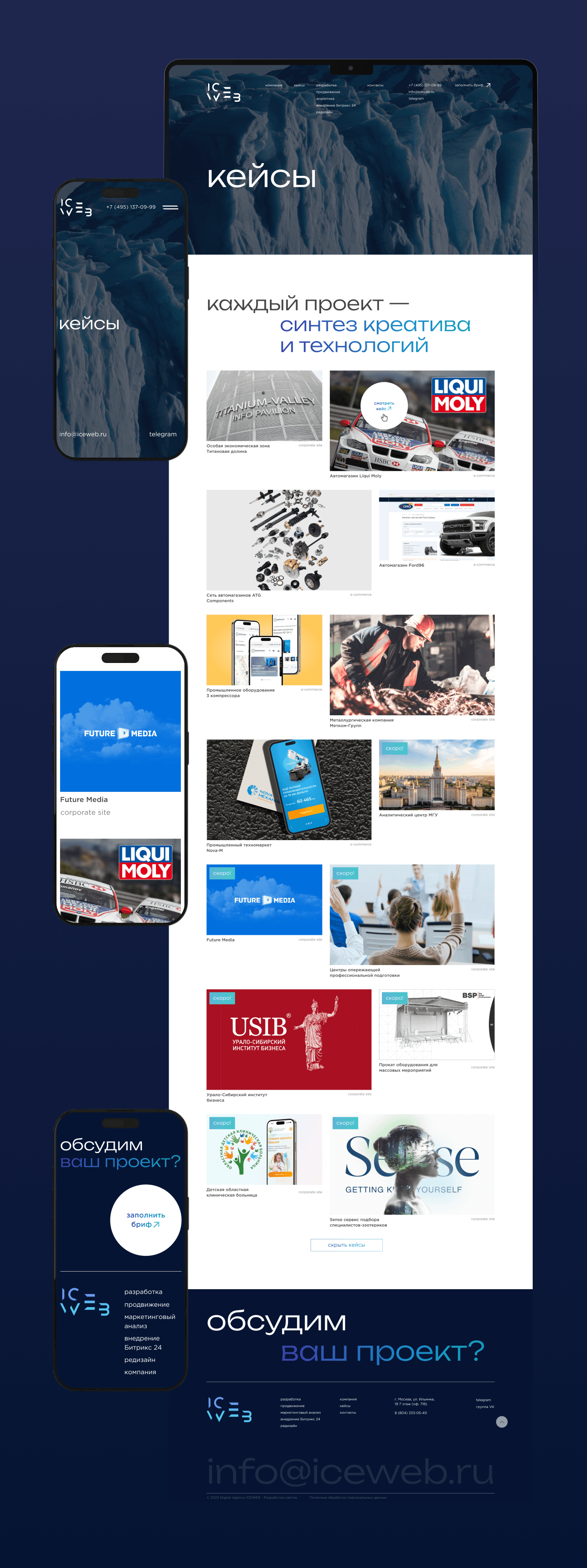 Айсвеб — это веб-продакшн, который комплексно подходит к процессу создания цифровых продуктов, включающего в себя разработку, дизайн и техническую реализацию сайтов.